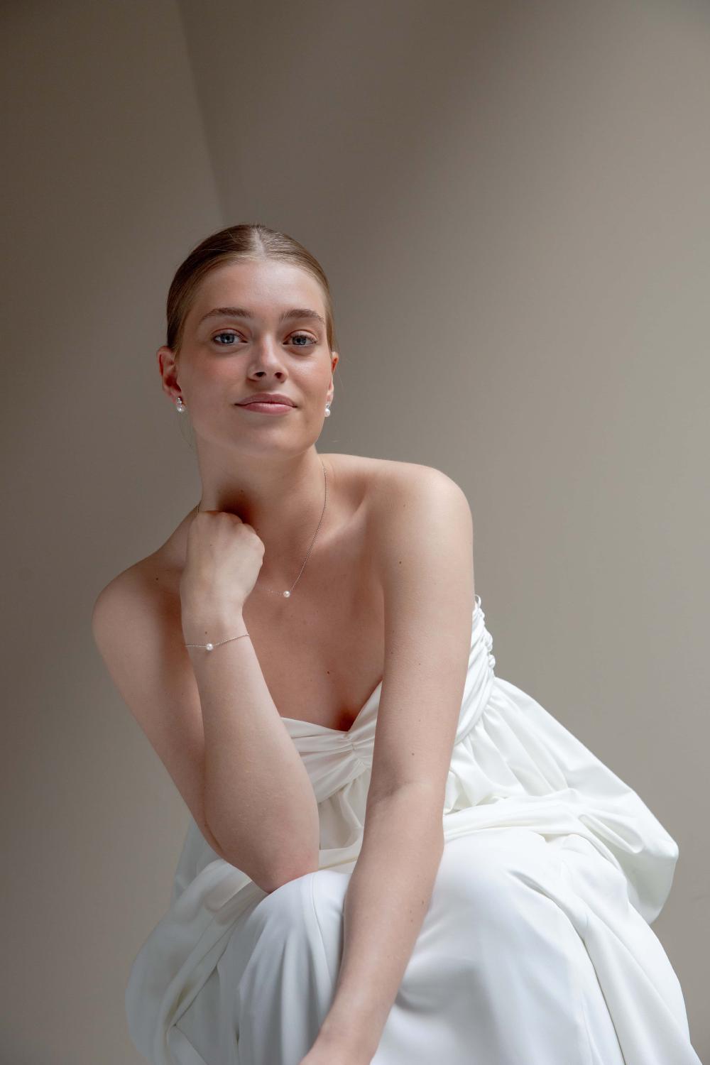 Hilfe bei passendem Schmuck für dein Hochzeitskleid? Schicke uns ein Foto deines Kleides per WhatsApp, und unsere Brautstylistin wird dir helfen!