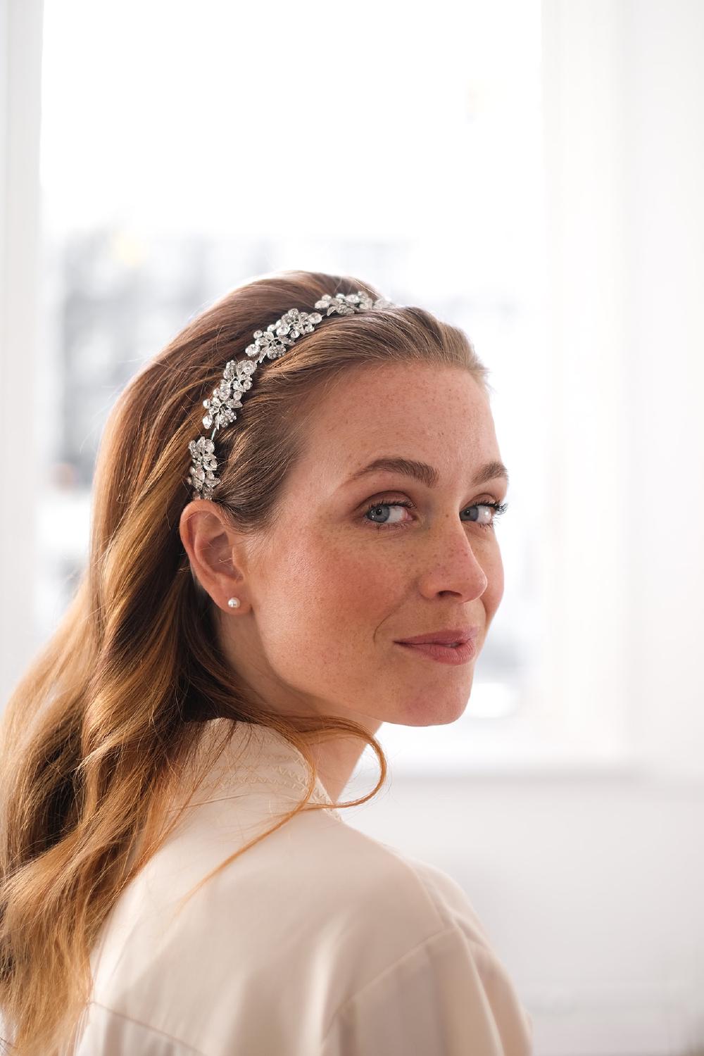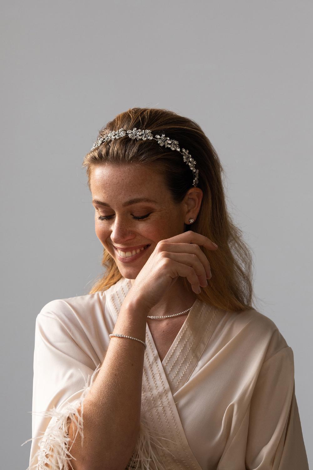Die Tiara Diana ist eine klassischeTiara aus der Abrazi Haarzubehör-Kollektion für die Braut, hergestellt mit Kristallen und einer Rhodium-Beschichtung. Ein perfektes Stück für die klassische Braut.