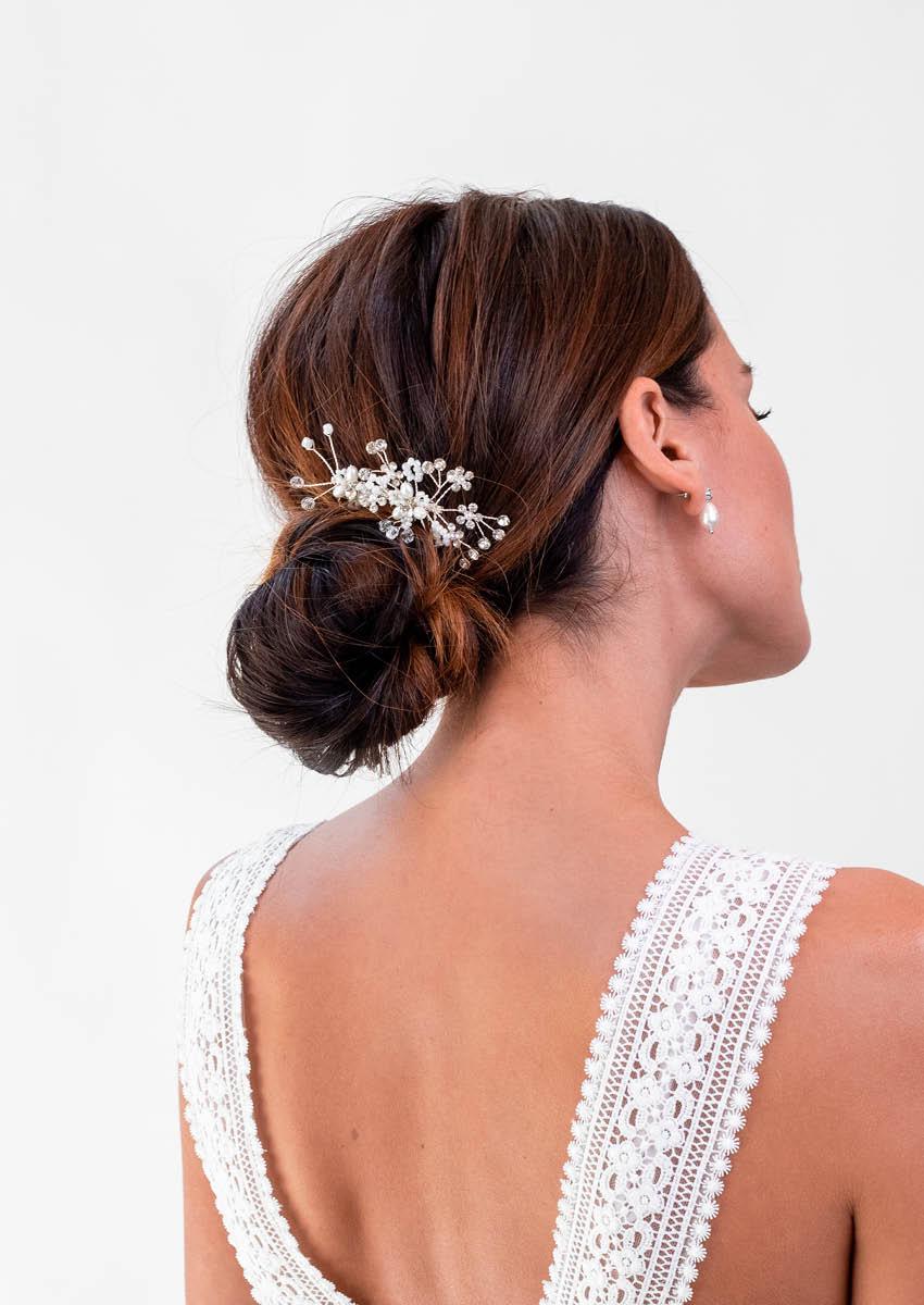 Der Haarkamm Lily ist ein klassisches, handgefertigtes Haar-Accessoire aus der Abrazi Bridal-Kollektion, perfekt für die moderne Braut. Erhältlich in Gold und Rhodium, ist dieser Kamm mit Kristallen und Perlen verziert und kann mit vielen verschiedenen Frisuren, wie Hochsteckfrisuren und Zöpfen, getragen werden, um die elegantesten Hochzeitsfrisuren zu kreieren.