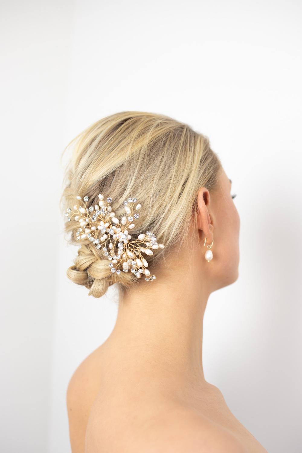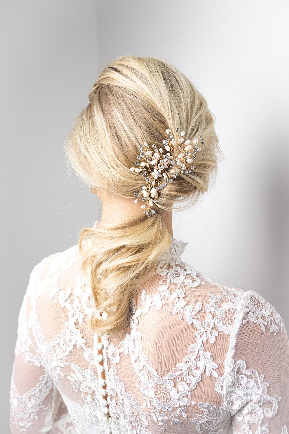 Der Haarkamm Madison ist ein umwerfendes handgefertigtes Stück aus der Abrazi Brautkollektion. Der rhodinierte Haardamm ist mit SüßwasserPerlenn und Kristallen verziert und kann mit vielen verschiedenen Frisuren wie Hochsteckfrisuren und Zöpfen getragen werden, damit Sie die elegantesten Hochzeitsfrisuren kreieren können.