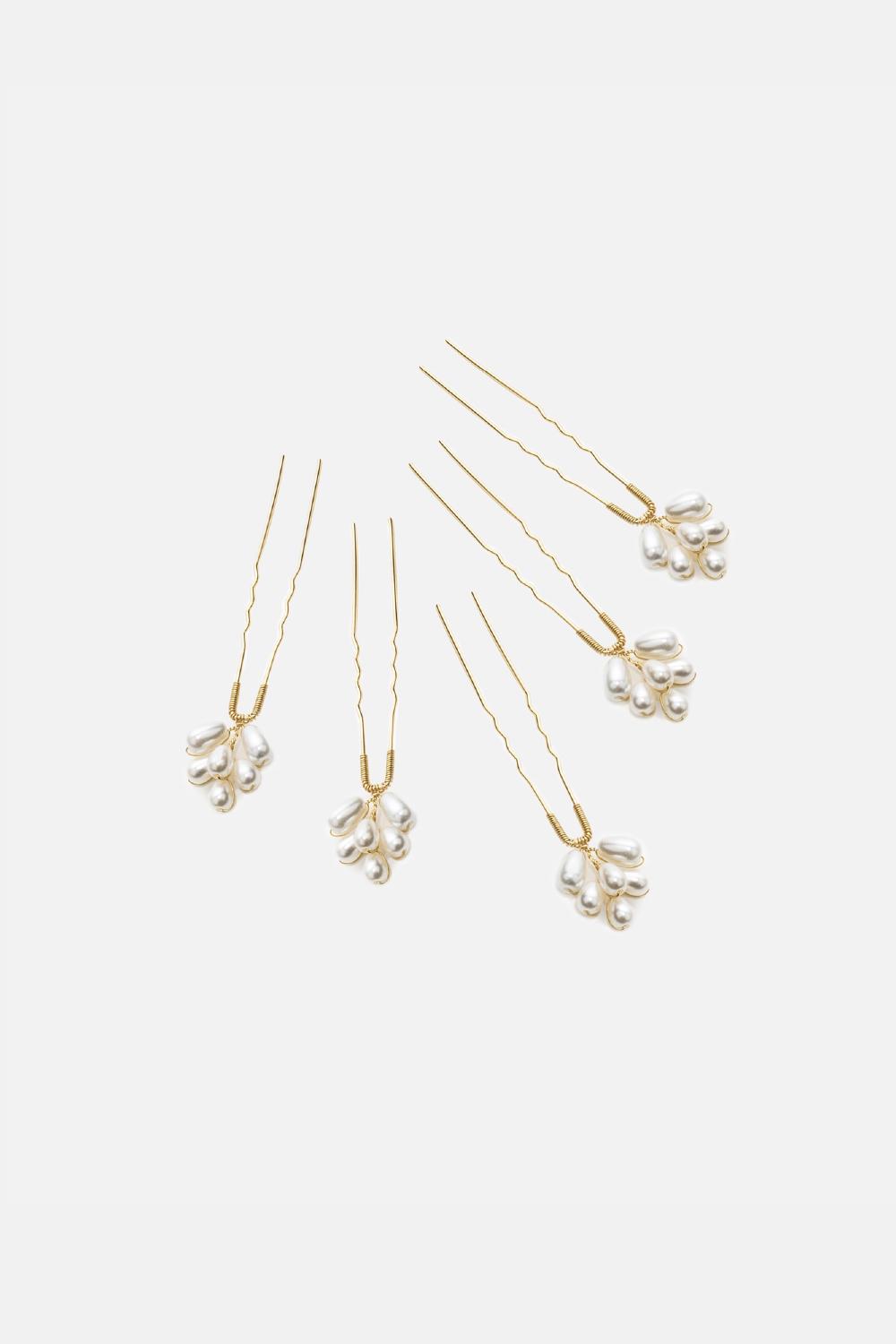 Die Haarnadeln Perla, die in Fünfer-Sets verkauft werden, sind wunderschöne Braut-Haarnadeln, die mit birnenförmigen Glasperlen verziert sind. Dank der sorgfältig von Hand gedrehten Metalldrähte mit einer Perle an jedem Ende können diese Haarnadeln in die gewünschte Form gebogen werden, was sie zu einem Kunstwerk für Ihr Haar an Ihrem Hochzeitstag macht. Erhältlich mit Gold- und Rhodiumbeschichtung.