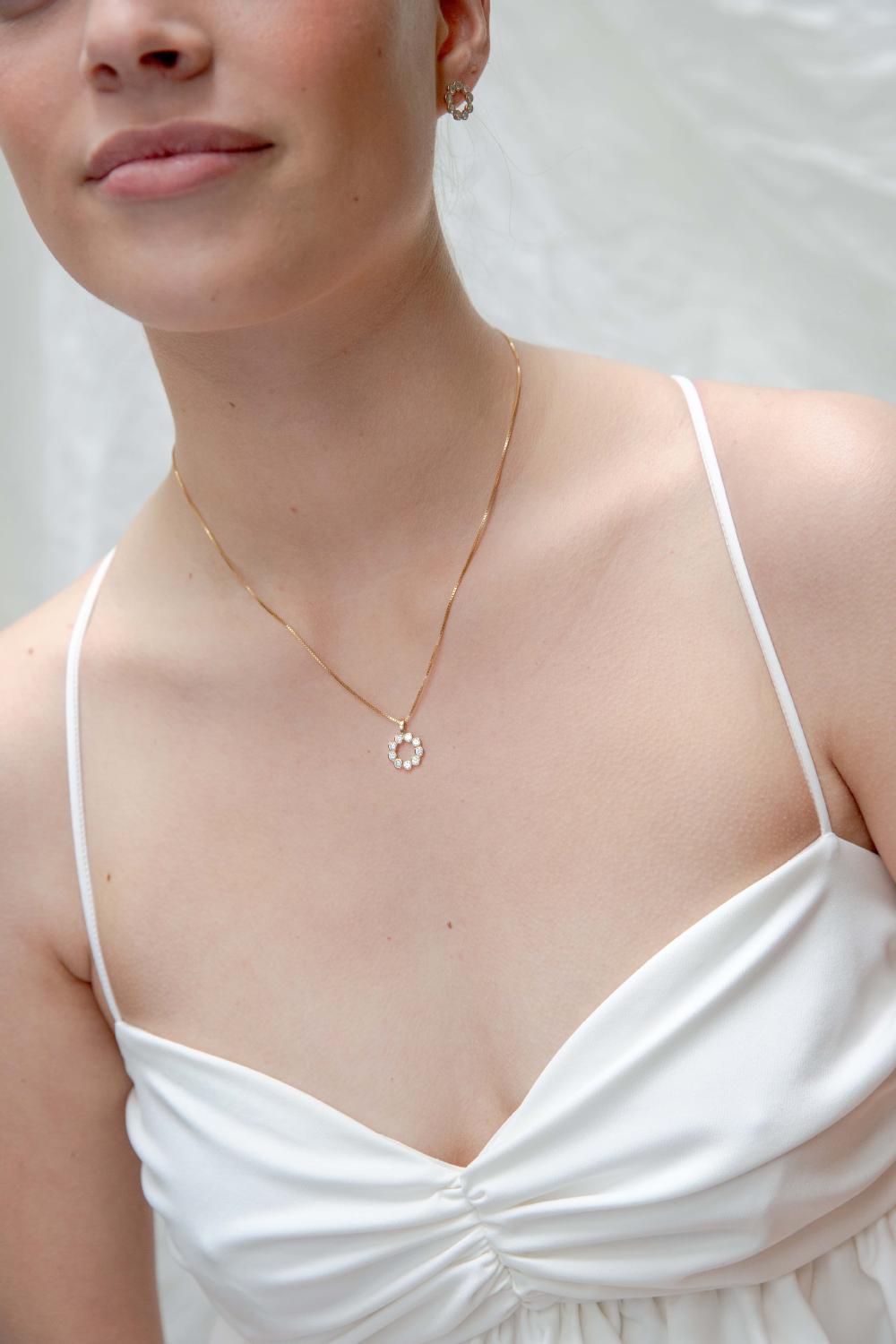 Hilfe bei passendem Schmuck für dein Hochzeitskleid? Schicke uns ein Foto deines Kleides per WhatsApp, und unsere Brautstylistin wird dir helfen!