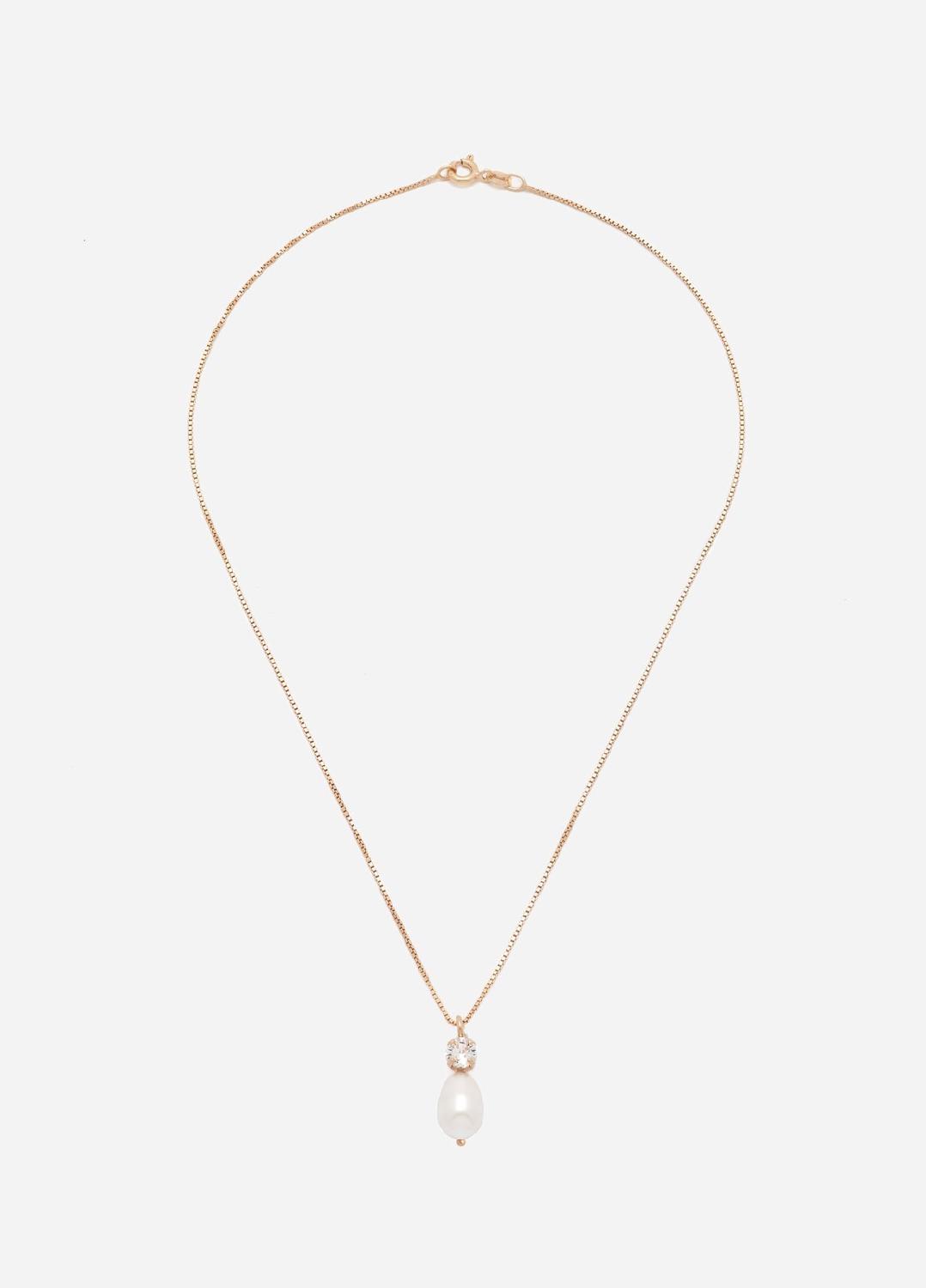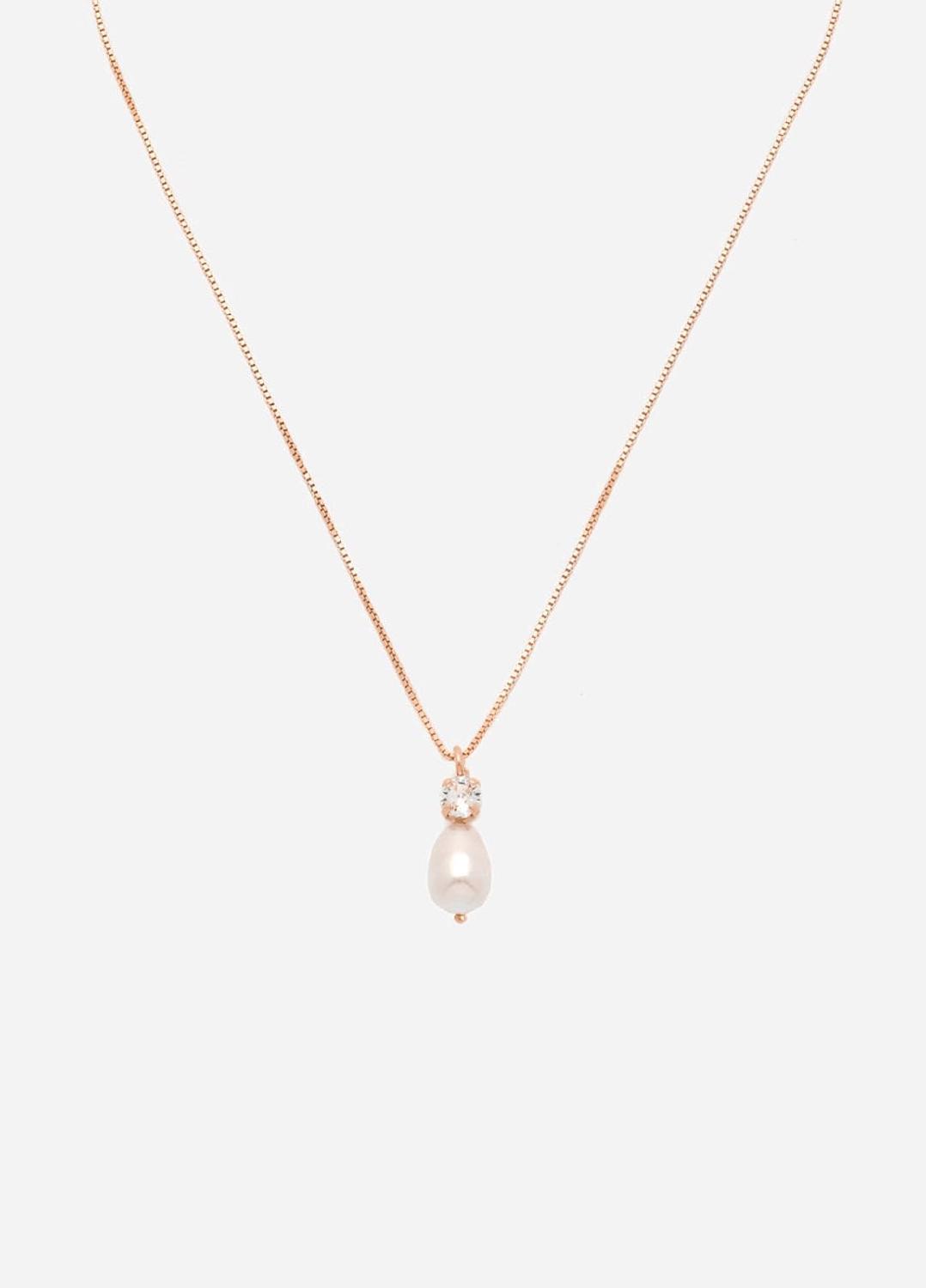 Die Elena-Kette ist eine elegante Halskette mit einem Kristallanhänger, kombiniert mit einer Swarovski-Tropfenperle an einer feinen Box-Kette. Die Elena-Kette passt perfekt zu einem V-Ausschnitt oder einem trägerlosen Hochzeitskleid und ist mit Rhodium, 14-karätigem Gold oder Roségold beschichtet erhältlich. Sie ist in zwei Längen verfügbar: 42 cm und 50 cm.