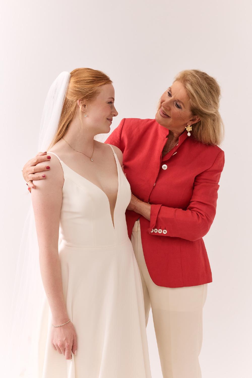 Hilfe bei passendem Schmuck für dein Hochzeitskleid? Schicke uns ein Foto deines Kleides per WhatsApp, und unsere Brautstylistin wird dir helfen!