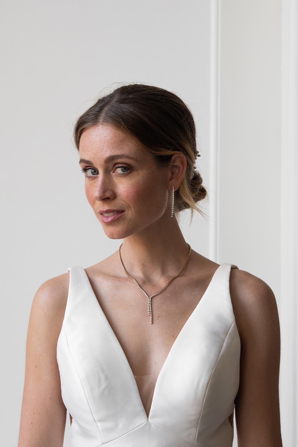 Hilfe bei passendem Schmuck für dein Hochzeitskleid? Schicke uns ein Foto deines Kleides per WhatsApp, und unsere Brautstylistin wird dir helfen!