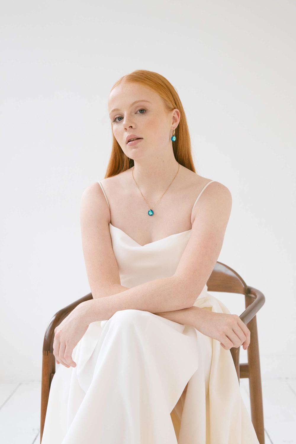 Hilfe bei passendem Schmuck für dein Hochzeitskleid? Schicke uns ein Foto deines Kleides per WhatsApp, und unsere Brautstylistin wird dir helfen!
