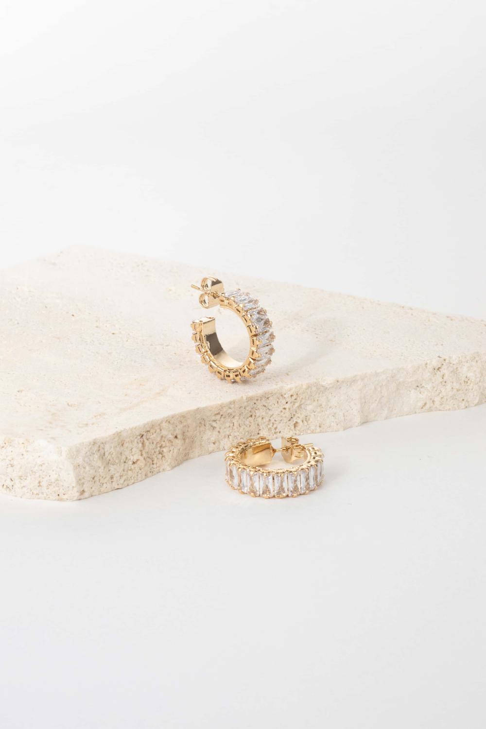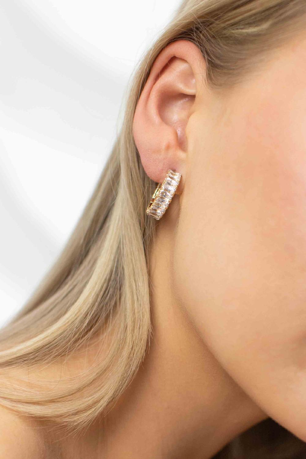 Die Lauren-Ohrringe sind eine perfekte Kombination aus klassischem und modernem Design, ein absolutes Muss für jede Braut, die für ihren großen Tag glänzende Creolen sucht. Diese Ohrringe sind perfekt, um sie alleine zu tragen oder in Kombination mit der Baguette-Halskette und/oder dem Armband für einen kompletten Look. Die Ohrringe bestehen aus kleinen Kristallen in Baguette-Form, die sorgfältig um den Messing-Ohrring herum platziert sind, und sind mit Gold- oder Rhodiumbeschichtung erhältlich.