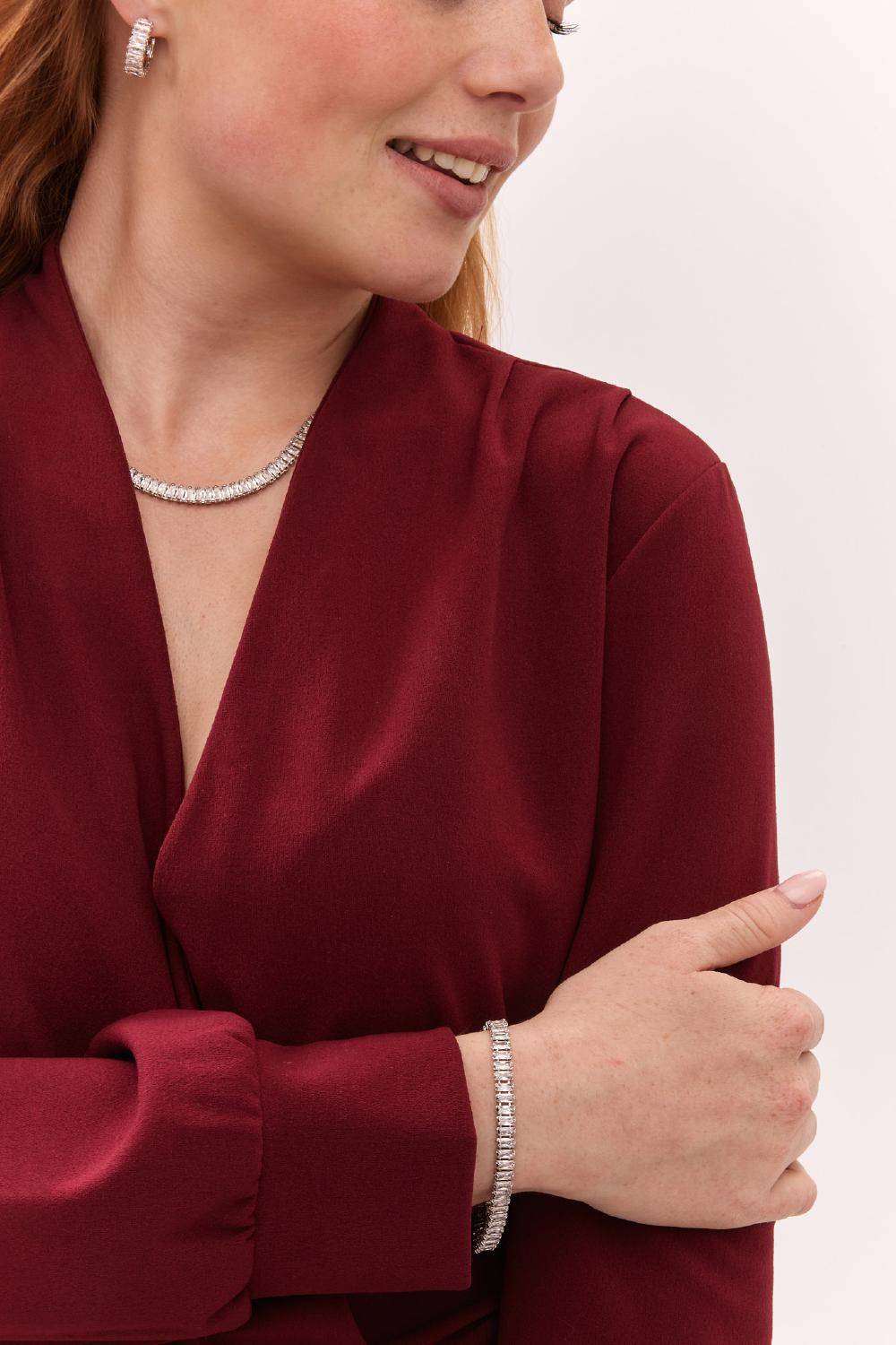 Die Lauren-Ohrringe sind eine perfekte Kombination aus klassischem und modernem Design, ein absolutes Muss für jede Braut, die für ihren großen Tag glänzende Creolen sucht. Diese Ohrringe sind perfekt, um sie alleine zu tragen oder in Kombination mit der Baguette-Halskette und/oder dem Armband für einen kompletten Look. Die Ohrringe bestehen aus kleinen Kristallen in Baguette-Form, die sorgfältig um den Messing-Ohrring herum platziert sind, und sind mit Gold- oder Rhodiumbeschichtung erhältlich.