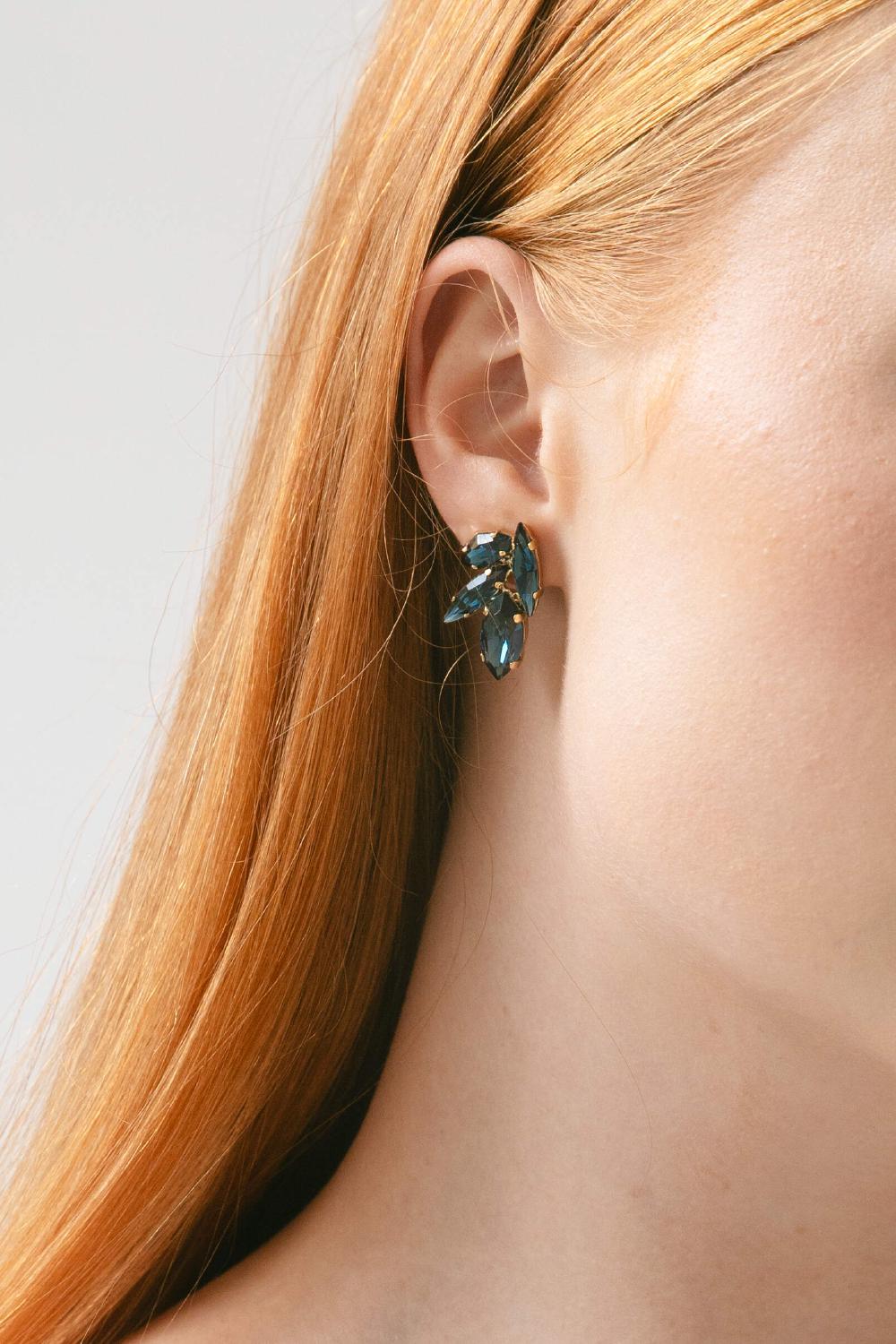 Lernen Sie die Liz Ohrringe in Blau kennen, das gewagte Gegenstück zu unseren transparenten Kristall-Liz Ohrringen. Diese auffälligen Brautohrringe sind mit blauen, hochwertigen Swarovski-Kristallen besetzt, die in langlebigem Messing gefasst sind. Erhältlich mit Rhodium- oder 14 Karat Goldbeschichtung, verleihen sie jedem Hochzeitslook einen Hauch von Raffinesse.