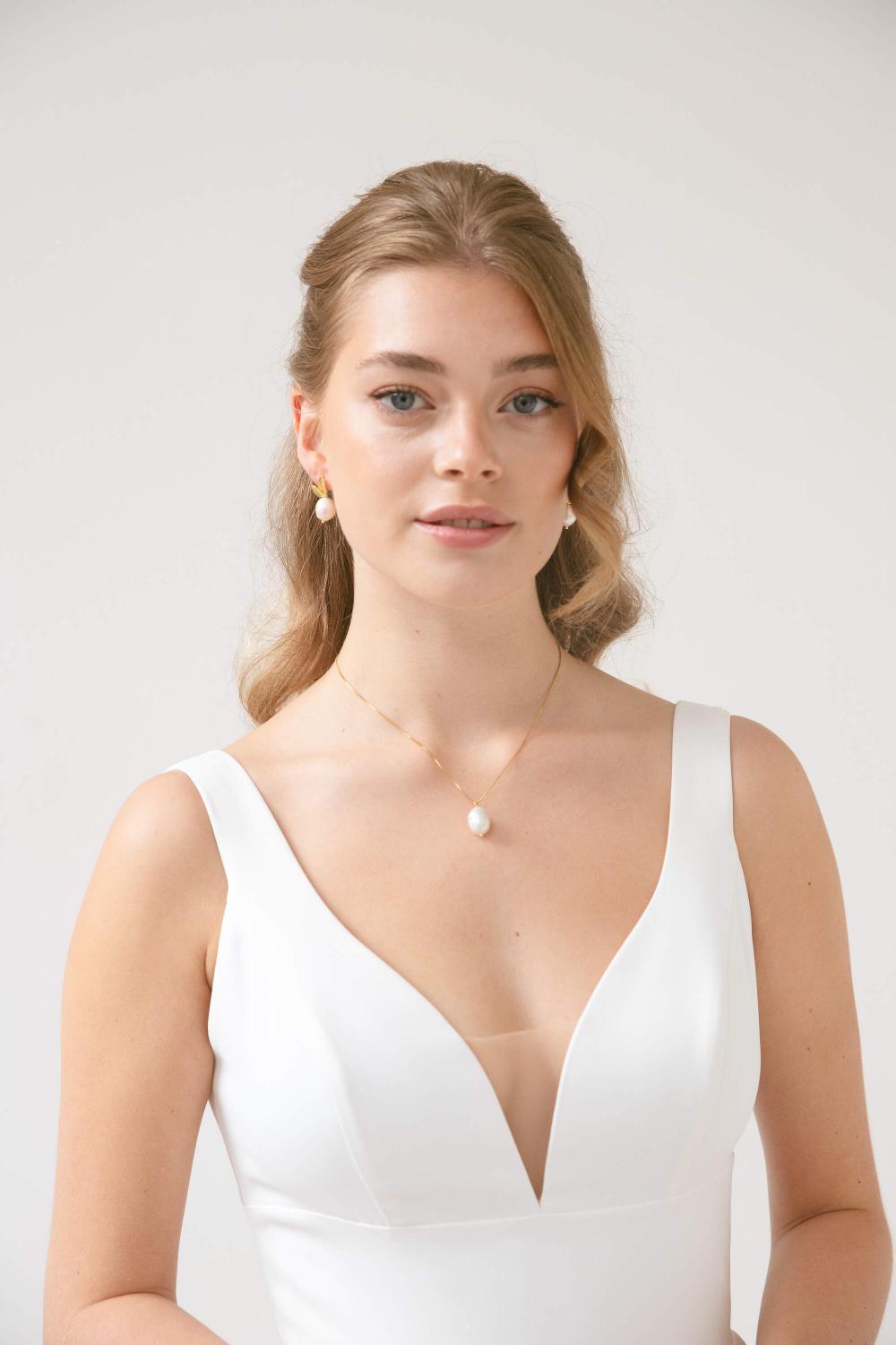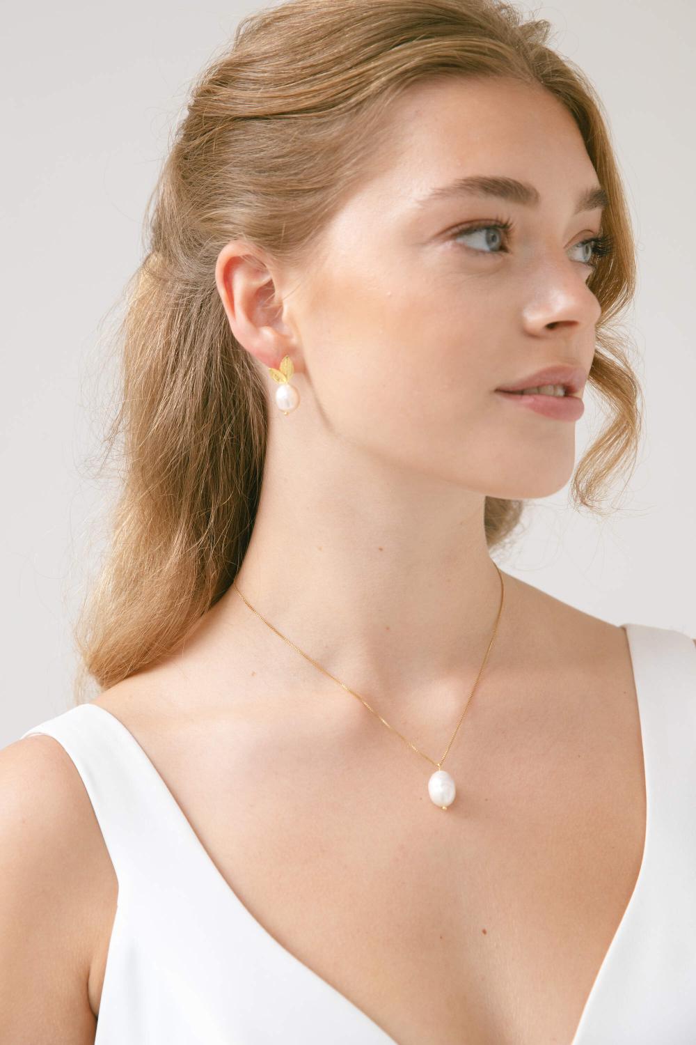 Mit einem zarten Blattform-Motiv und einer leuchtenden Barockperle sind diese Ohrringe ein Inbegriff von unaufdringlicher Schönheit. Ideal für Bräute, die einen natürlichen Look suchen, verleihen die Malik Perlenohrringe Ihnen einen sanften, zeitlosen Stil, der mühelos mit jedem Brautlook kombiniert werden kann.