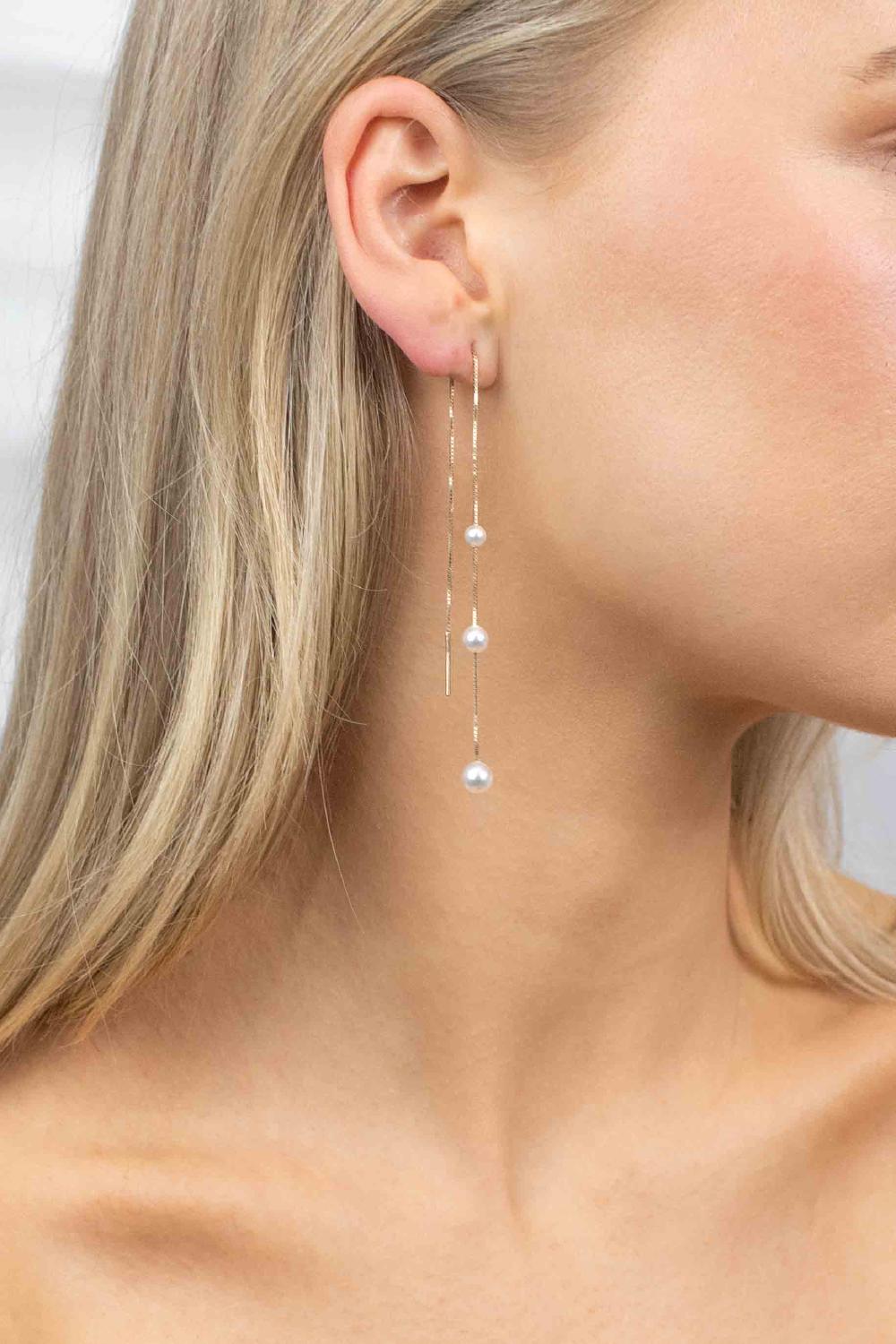 Die Maren Einfädler-Ohrringe, die kleine Schwester der Resa Earrings, sind moderne Braut Ohrringe mit drei wunderschönen Swarovski-Perlen an einer 925er Sterling Silber Box Kette. Dank des Fädel-Designs können Sie diese Ohrringe durch mehrere Piercings tragen und erhalten so einen einzigartigen Look. Die Maren-Ohrringe sind mit einer Rhodium-, 14-karätigen Gold- oder Roségold-Beschichtung erhältlich.
