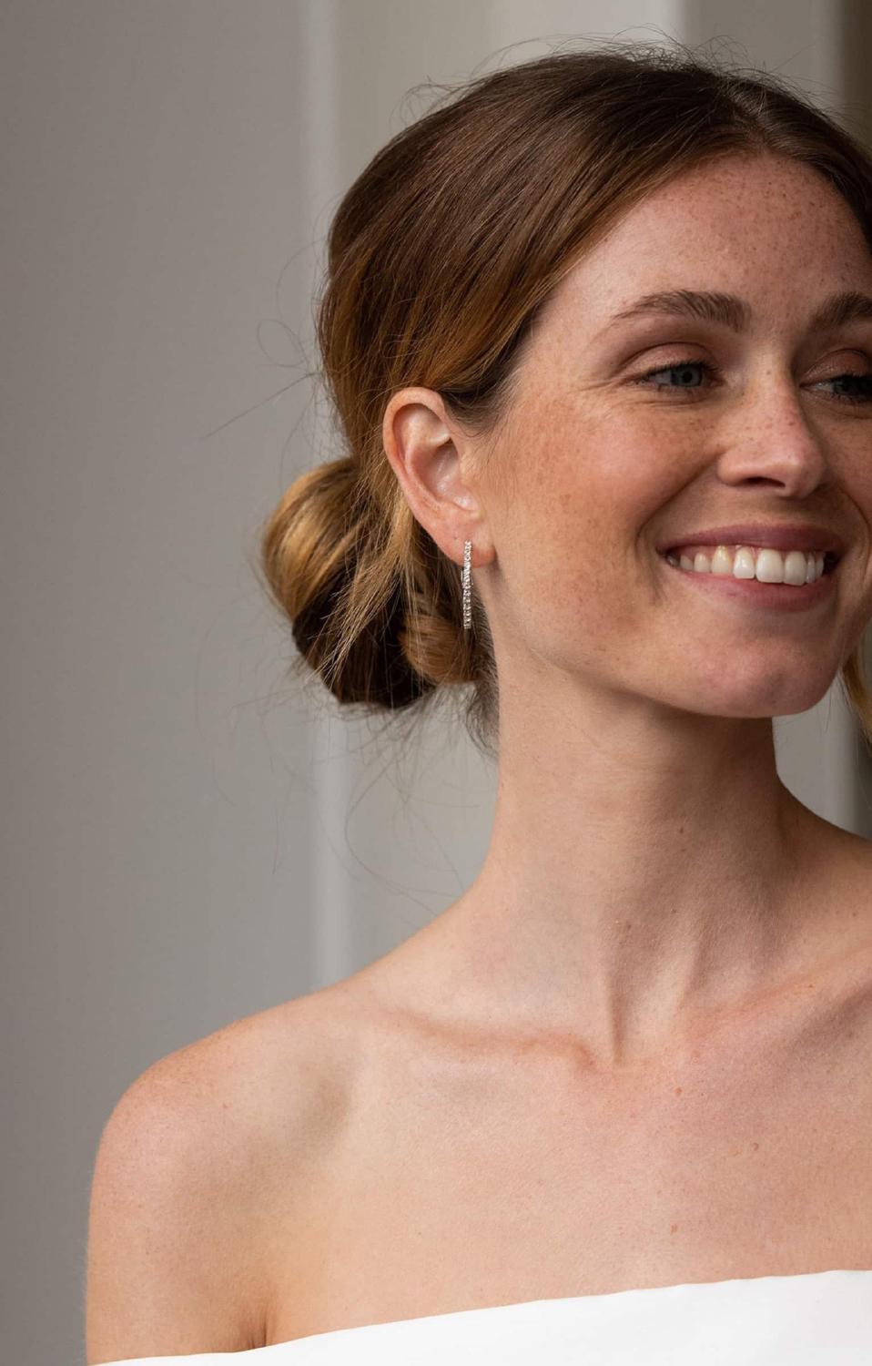 Die Naomi Ohrringe sind ein Must-Have für die moderne Braut: die ultimativen ovalen Creolen. Handgefertigt aus hochwertigem Messing und verziert mit kleinen Swarovski-Kristallen, sind sie in zwei Größen erhältlich und können mit Rhodium-, 14 Karat Gold- oder Roségold-Beschichtung geliefert werden.