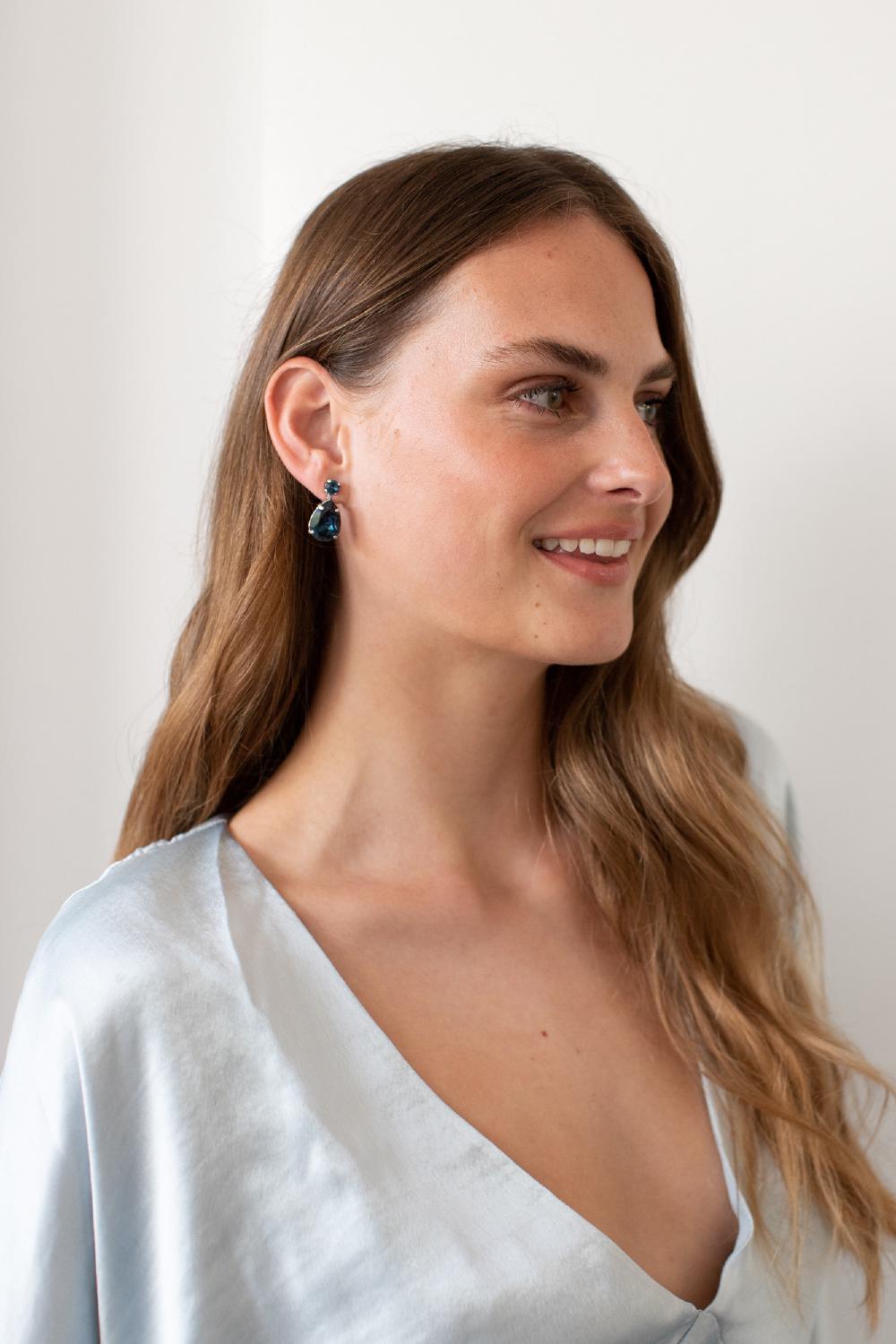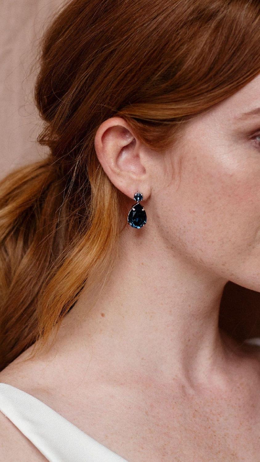 Die Sophia Ohrringe sind die ultimativen Abrazi-Klassiker, erhältlich in verschiedenen Farbkombinationen. Diese eleganten Brautohrringe sind mit hochwertigen, tropfenförmigen Swarovski-Kristallen in erstklassigen Messingfassungen gefertigt. Bevorzugen Sie eine kleinere Größe? Schauen Sie sich unsere Soraya oder Maddie Ohrringe an.