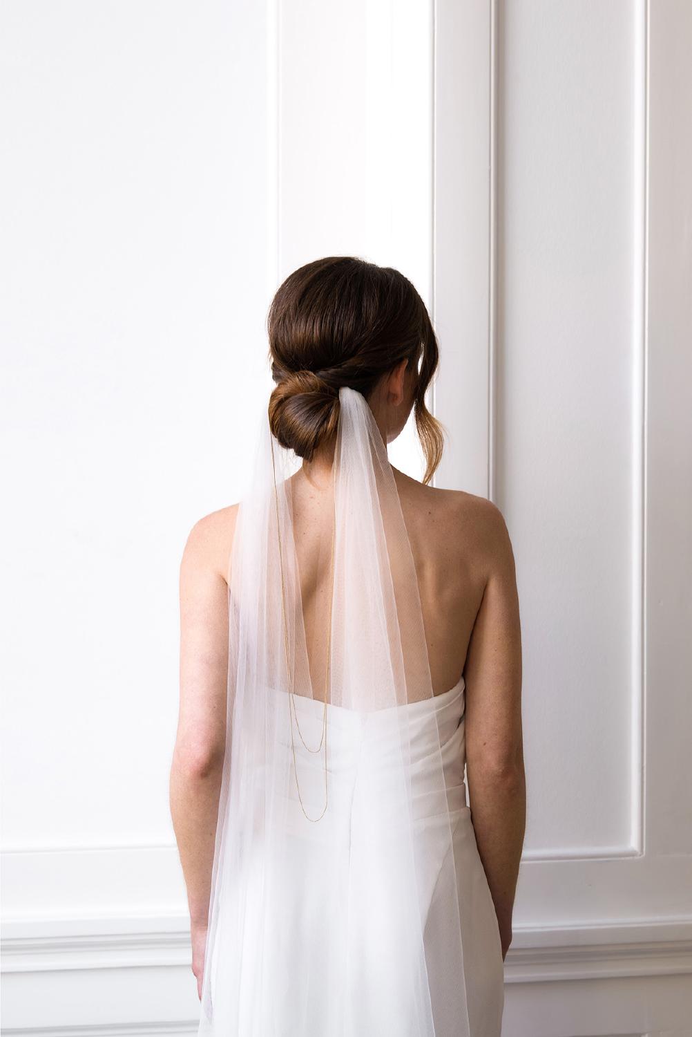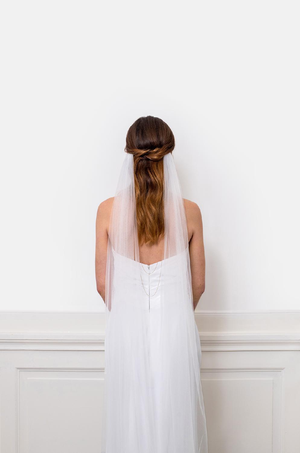 Entdecken Sie den wunderschönen Rome Schleier, ein einzigartiges Design, das Ihren Brautlook vervollständigen wird. Dieser Schleier hat seinen Namen von seinem Design: Der elfenbeinfarbene italienische Tüll wird an zwei Stellen mit zwei kleinen Kämmen in Ihrer Frisur befestigt, um einen römischen Look zu kreieren.