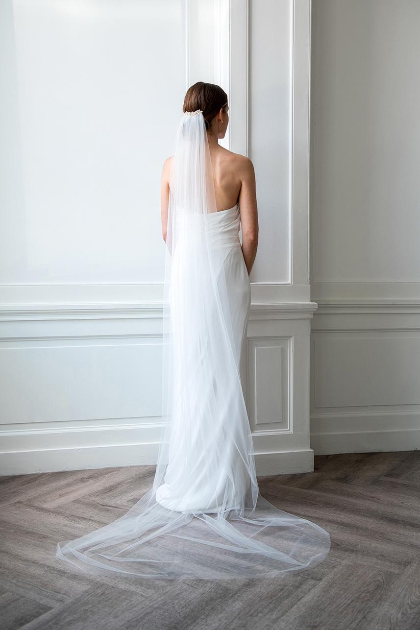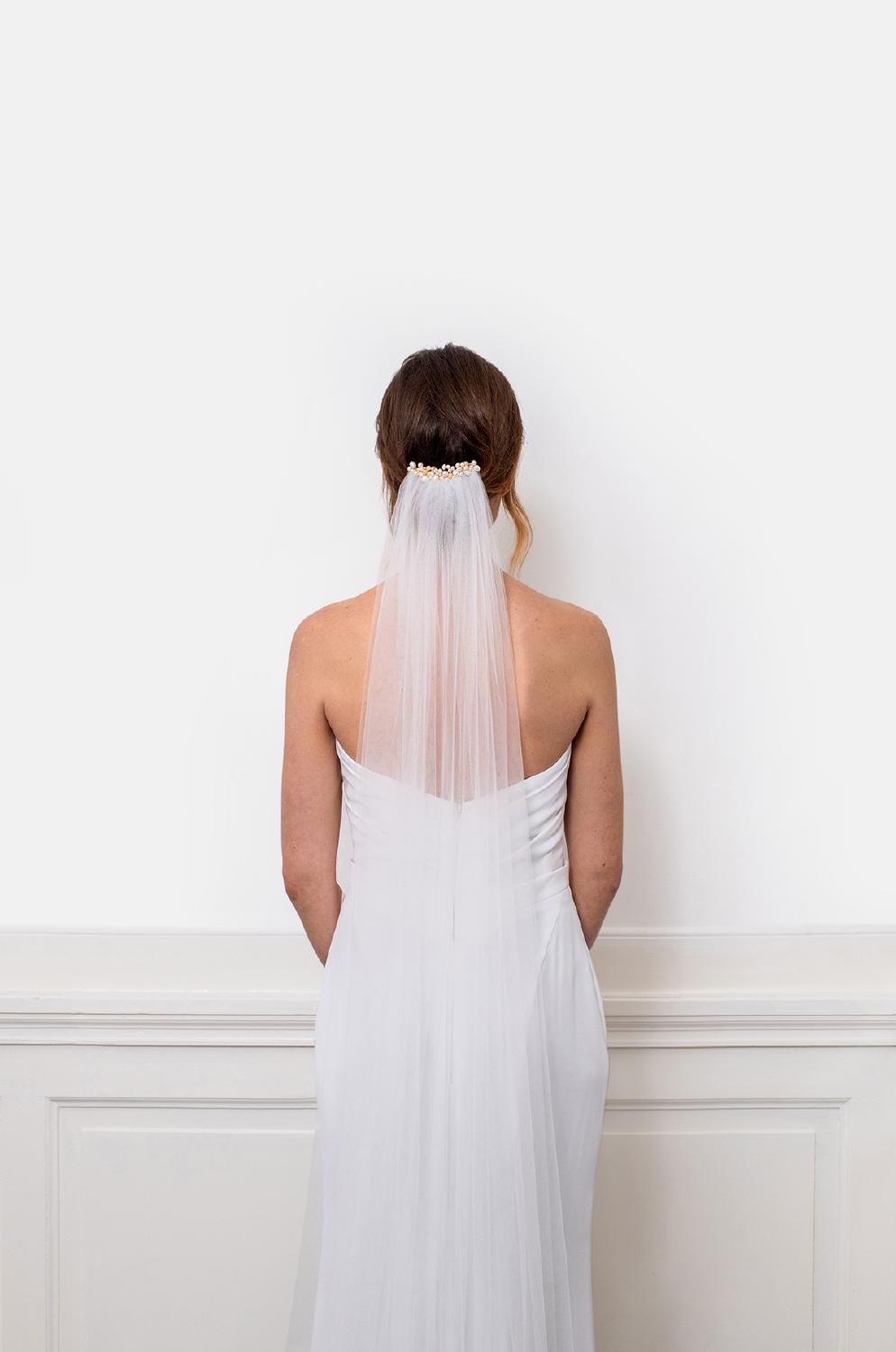 Der Rozan Schleier ist aus elfenbeinfarbenem italienischem Tüll gefertigt. Der wunderschön gestaltete Haarkamm dient als eigenständiges, auffälliges Haaraccessoire, so dass neben dem Schleier kein weiteres Styling für Ihr Haar erforderlich ist.
