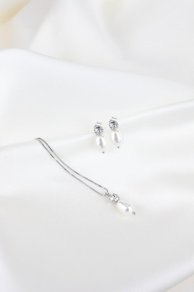 Das Schmuckset Elena ist ein dezente und schickes Accessoire für die Braut. Die Venezianerkette aus 925er Silber mit ihrem handfertigtem Anhänger aus Kristall und Perlen lässt sich perfekt mit den passenden, handgefertigten Elena Ohrringen kombinieren. Das Schmuckset ist mit einer Rhodium-, 14 Karat Gold- sowie Roségoldbeschichtung erhältlich.
