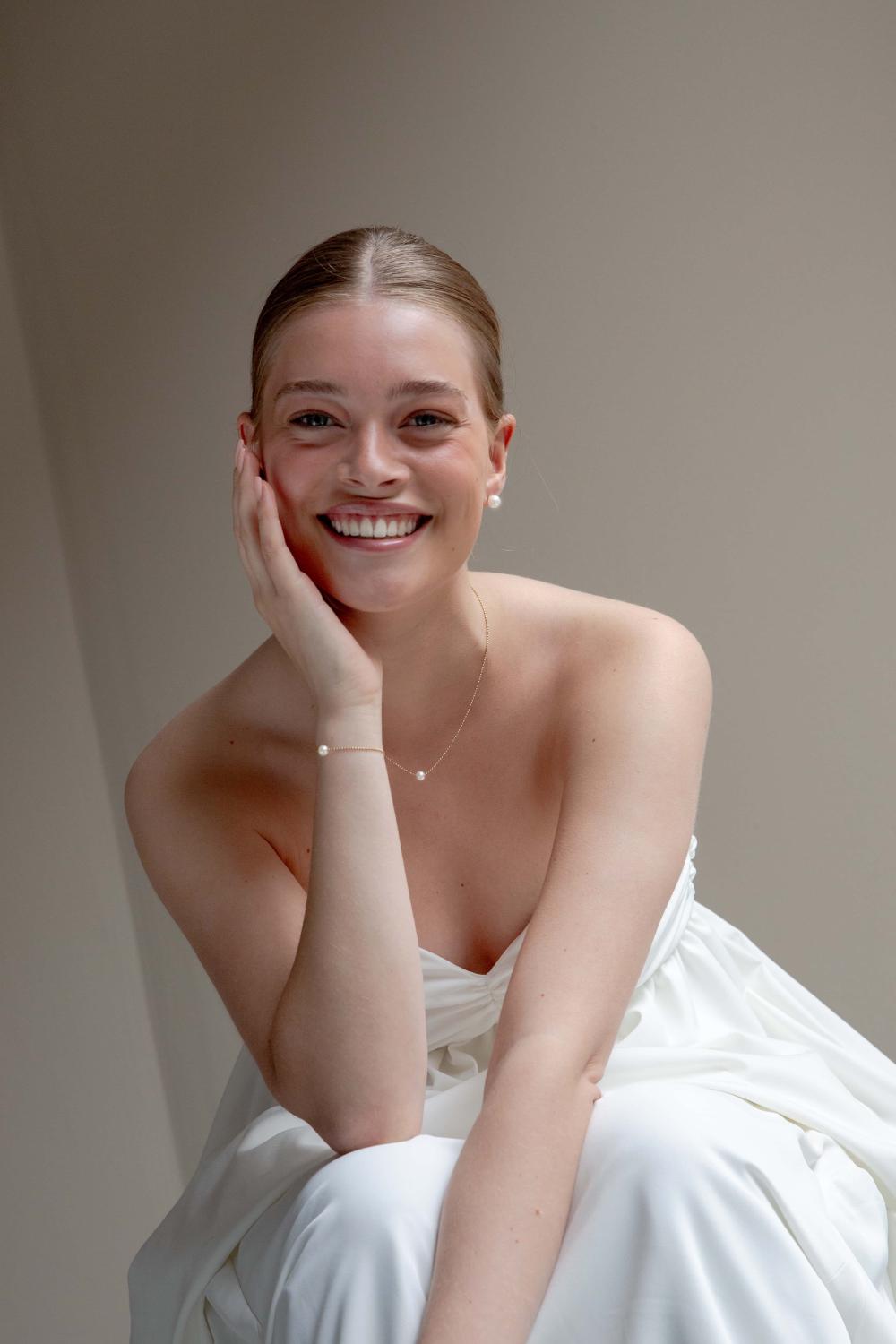 Das Schmuckset Jess ist besonders fein gearbeitet und die perfekte Wahl für die klassische Braut. Das Set besteht aus einer Kette in 925er Sterlingsilber mit einer einzelnen Perle und einem passenden Armband. Es ist wahlweise mit einer Rhodium-, 14k Gold- oder Roségoldbeschichtung erhältlich. Ein wunderschönes Brautschmuckset, an dem Sie noch lange nach der Hochzeit Freude haben.