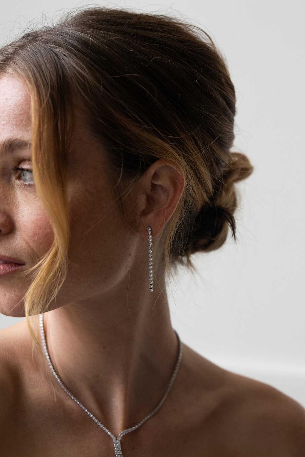 Das Jet Set ist ein einfaches, klassisches und raffiniertes Schmuckset, bestehend aus einer schönen Halskette und minimalen Ohrringen, beide aus haltbarem Messing, besetzt mit kleinen Zirkonia-Kristallen. Das Jet Set ist mit einer Rhodium-, 14-karätigen Gold- oder Roségold-Beschichtung erhältlich.