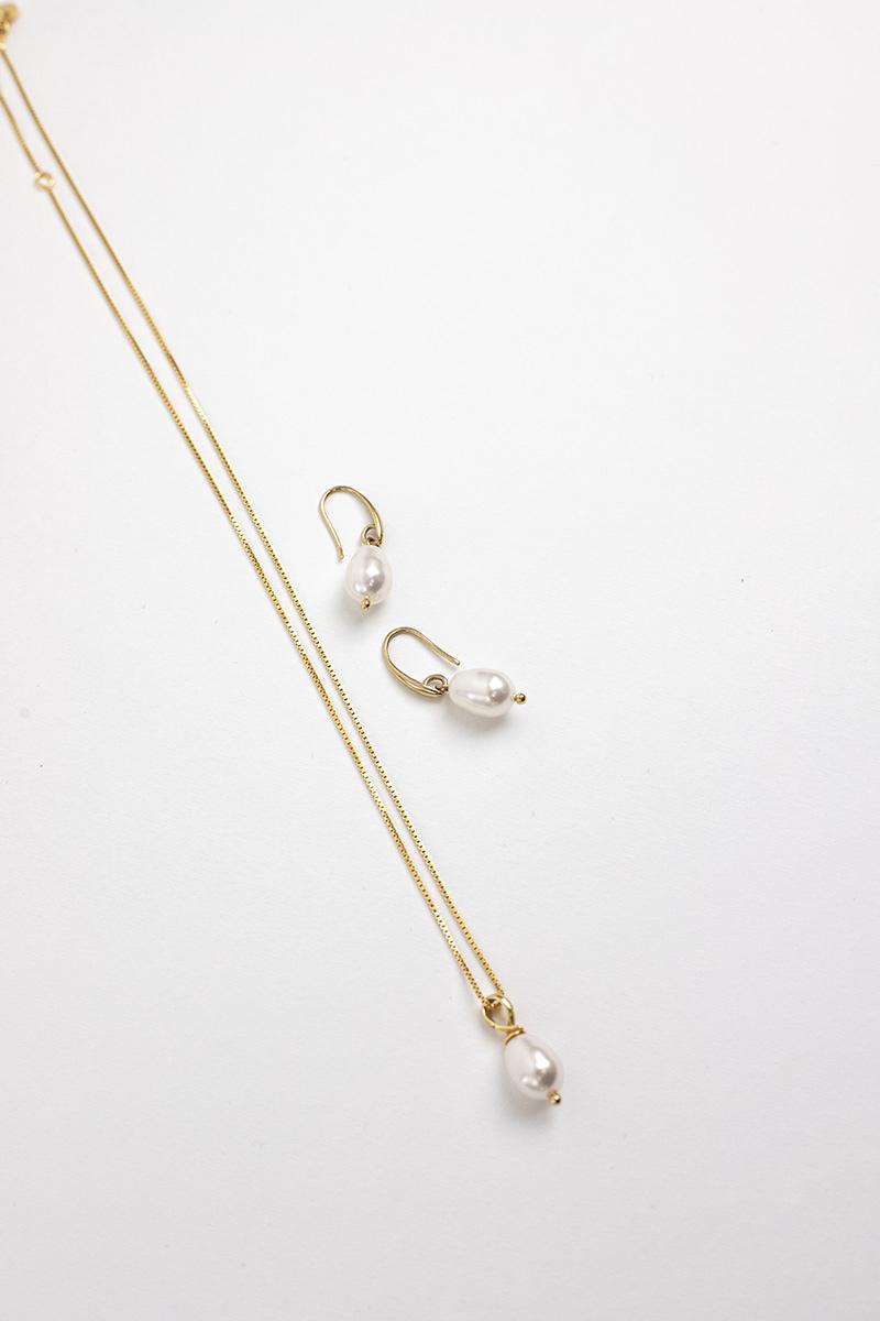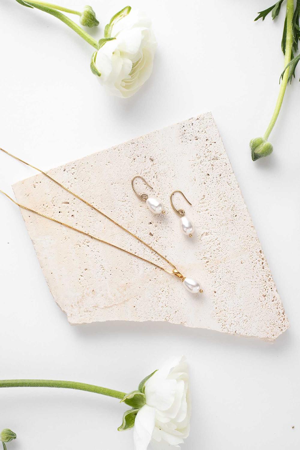 Das Julie Schmuckset ist eine dezente, aber schicke Wahl für Bräute. Die Kette verfügt über eine 925er Silber Boxkette mit einem Swarovski-Perlenanhänger, perfekt kombinierbar mit den handgefertigten Julie Ohrringen. Erhältlich in Rhodium oder 14kt Gold, ist dieses Set so entworfen, dass es lange nach Ihrem Hochzeitstag getragen werden kann.
