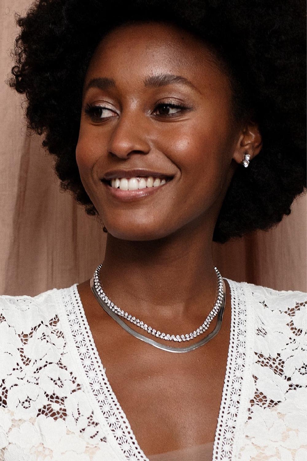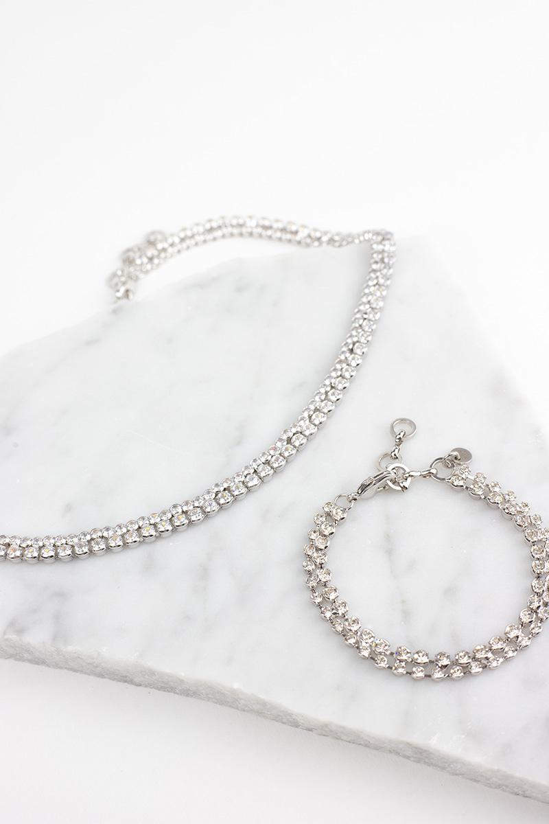 Das Schmuckset Lofty ist ein Abrazi Klassiker, an dem Sie viele Jahre Freude haben. Die doppelte Reihe Kristalle macht die Halskette und das Armband zu einem echtem Blickfang. Das Set ist mit einer Rhodium-, 14 Karat Gold- bzw. Roségoldbeschichtung erhältlich. Ein prächtiges Brautschmuckset für die klassische und moderne Braut.