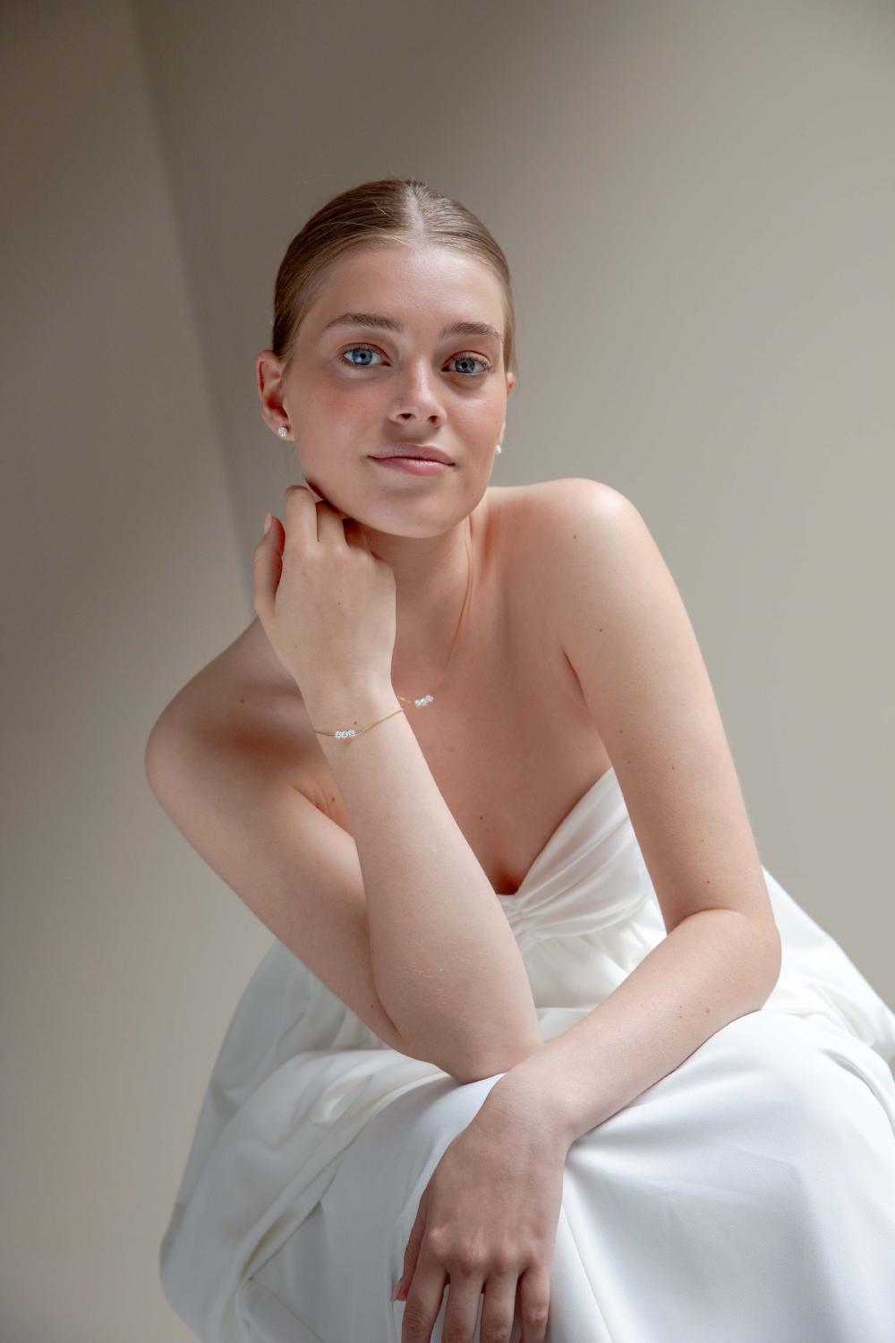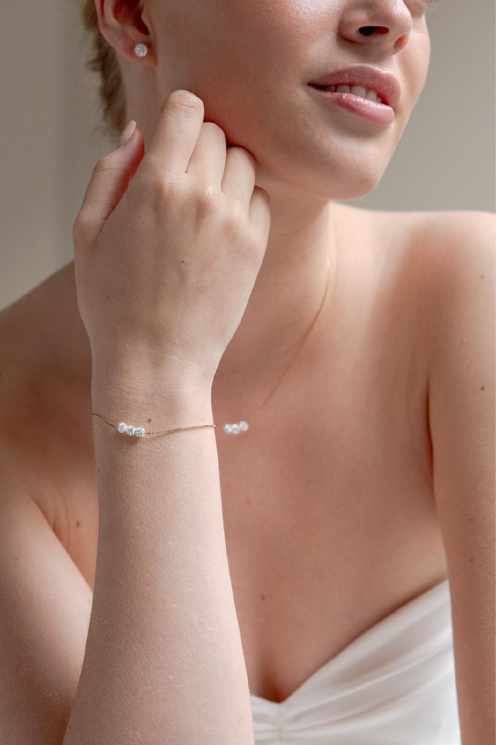 Das Lux Schmuckset ist eine wunderschöne Wahl für Ihren Hochzeitstag und andere besondere Anlässe. Dieses Set enthält eine raffinierte Kette und ein passendes Armband, beide mit drei kleinen Kristallperlen, die einen schicken, modernen Look verleihen. Gefertigt aus 925er Silber und mit einem 3 cm Verlängerungsstück, um die gewünschte Länge anzupassen. Handgefertigt und erhältlich in Rhodium oder 14kt Goldplattierung. Dieses klassische Set ist bequem zu tragen und leicht zu kombinieren, eine perfekte Ergänzung für Ihre Schmucksammlung.