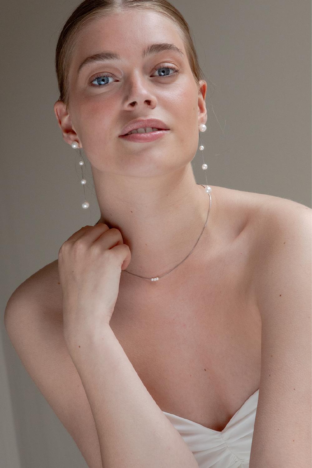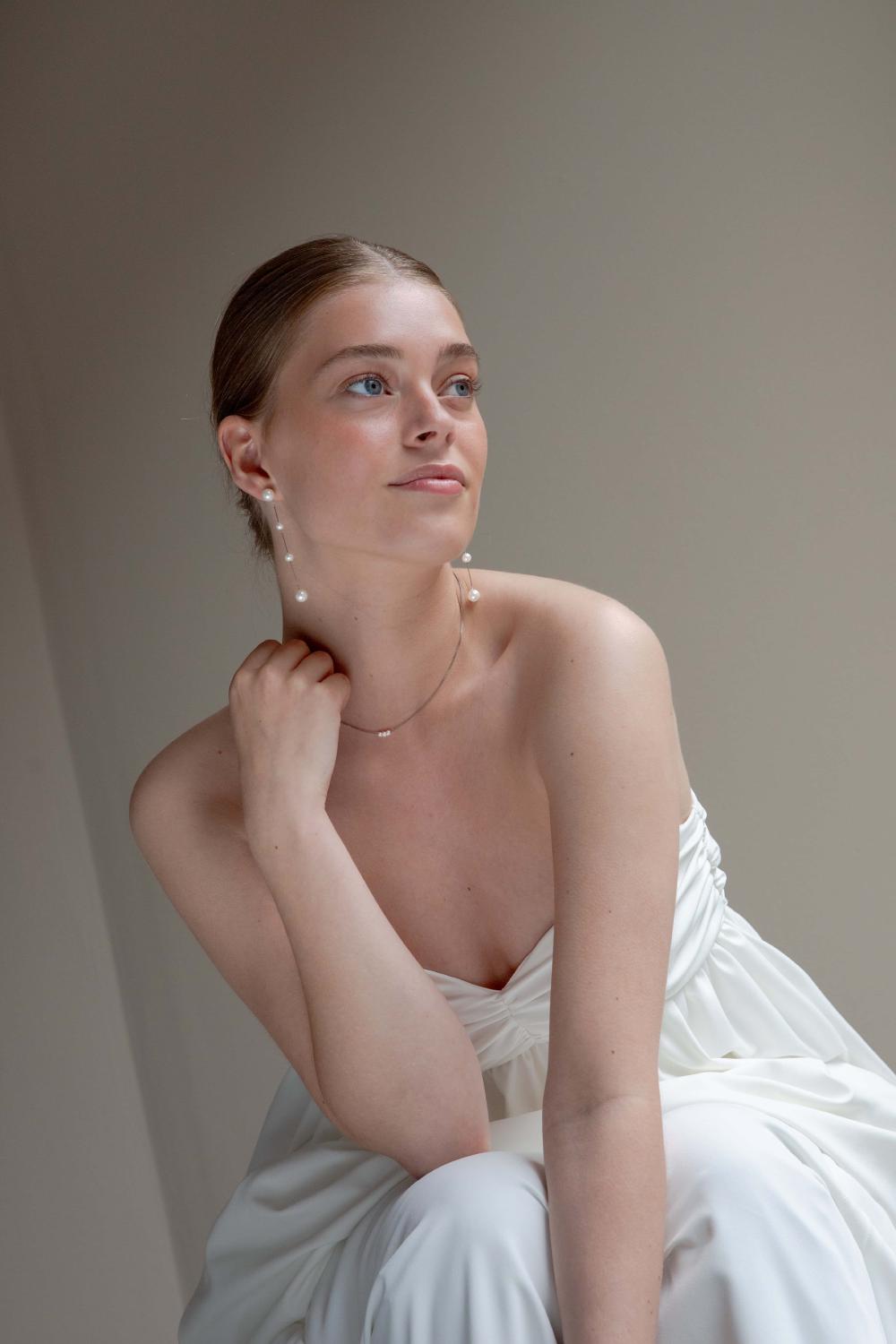 Das Resa Schmuckset ist eine stilvolle Wahl für moderne Bräute. Es enthält die vielseitigen Resa Ohrringe, die als einfache Perlenstecker oder mit einer Perlenkette für einen auffälligeren Look getragen werden können, und die Legend Kette. Gefertigt aus 925er Silber und erhältlich in Rhodium oder 14kt Goldplattierung, kreiert dieses Set einen schicken Hochzeitslook.