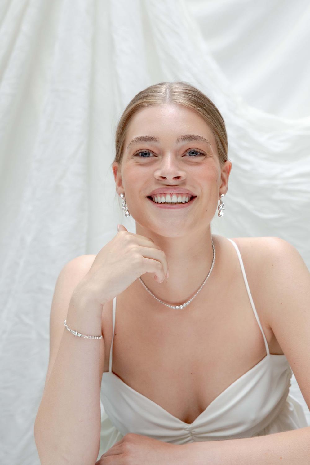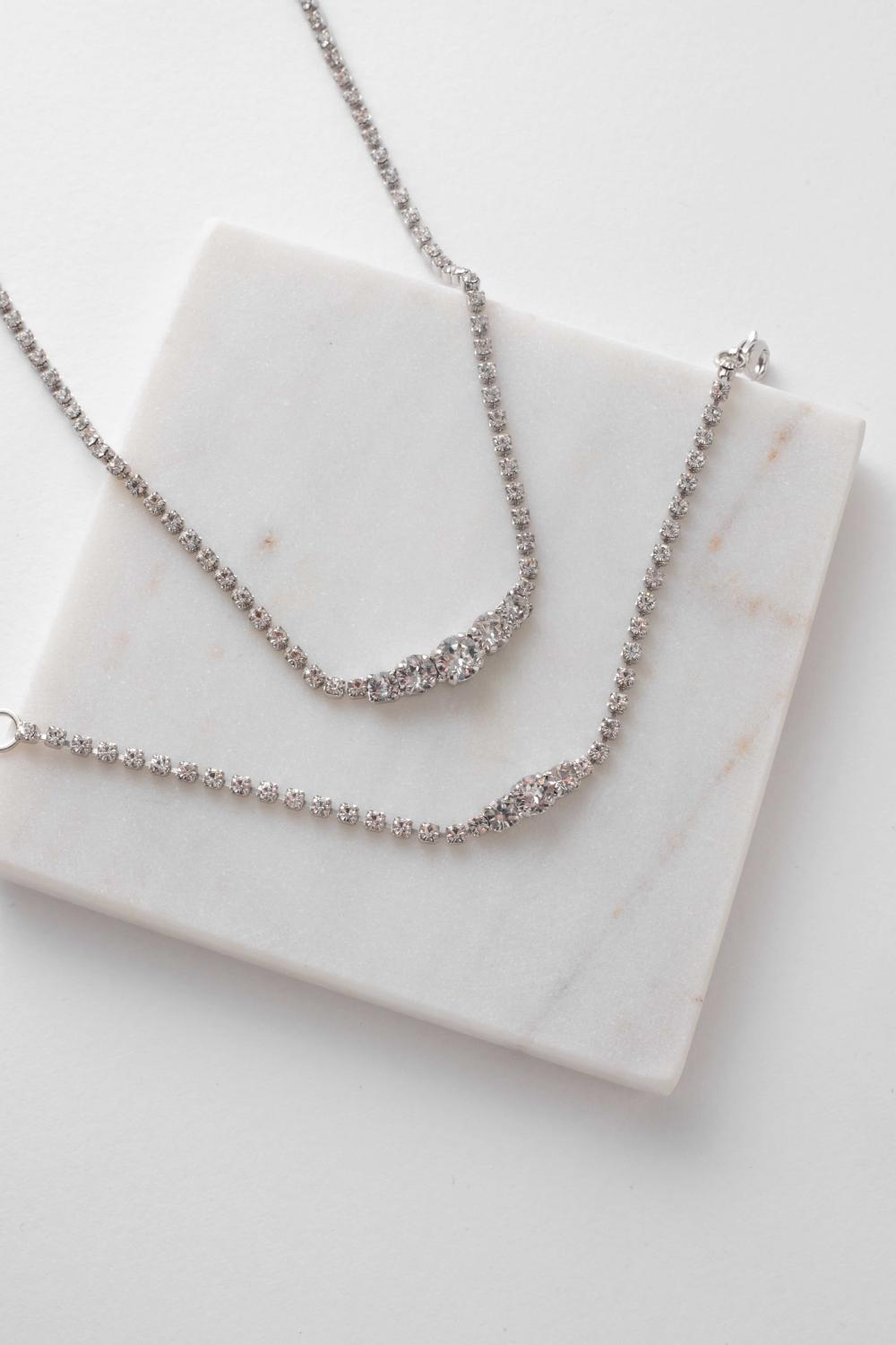 Die Kette Royal ist ein zierliches Schmuckstück, das trotzdem Eindruck macht: Dank der einzelnen Reihe Kristalle in verschiedenen Größen und der rhodiumbeschichtung passt die Halskette wunderschön zu dem Royal Armband. Ein perfektes Schmuckset für die klassische Braut.