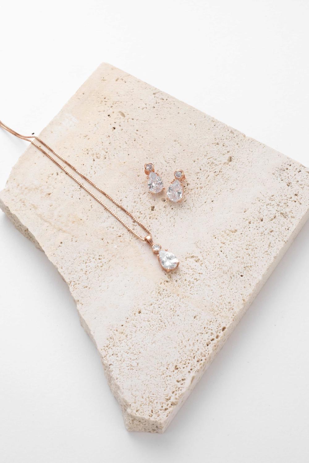 Das Schmuckset Soraya, ein Klassiker aus der Abrazi Kollektion, ist gleichzeitig chic und modern. Die Halskette mit doppeltem Kristallanhänger ist einfach zu kombinieren und passt wunderschön zu dem Kristallarmband mit demgleichen birnengförmigen Kristall in der Mitte. Erhältlich mit einer Rhodium-, 14 Karat Gold- sowie Roségoldbeschichtung.