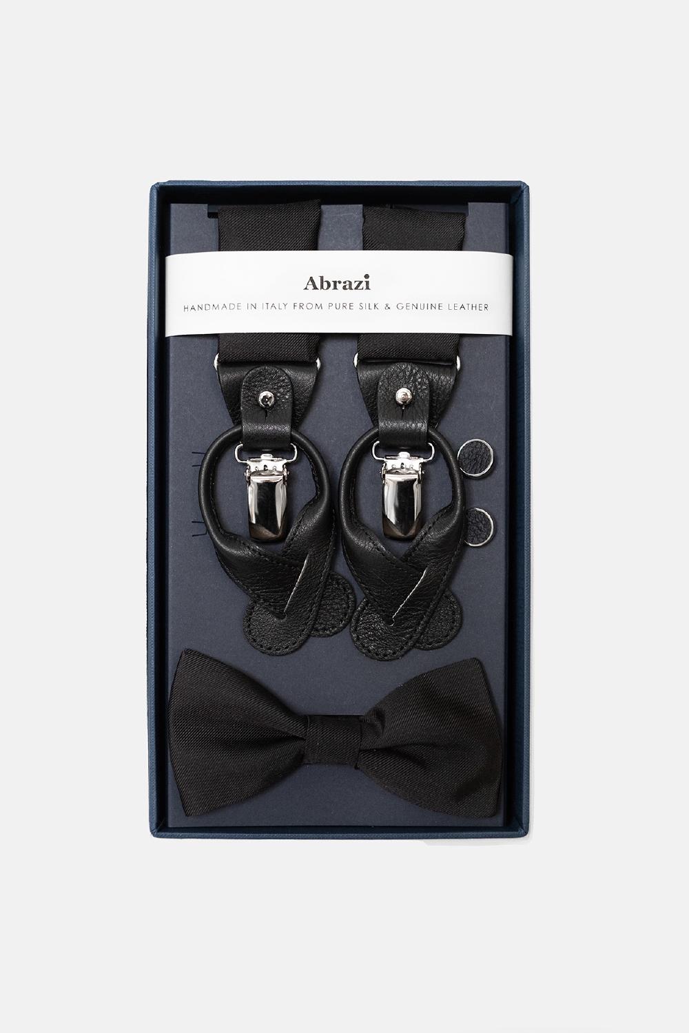 Das Abrazi Hosenträger-Set besteht aus handgefertigten Y-Hosenträgern, die mit Metallclips oder Knöpfen getragen werden können, einer passenden Fliege aus 100% Seide, einem Einstecktuch und einem Paar Manschettenknöpfen aus Leder. Handgefertigt in Italien aus reiner Seide und echtem Leder. Das Hosenträger-Set ist in sechs verschiedenen Farben erhältlich, eine gute Wahl für jeden Bräutigam, Trauzeugen oder stilvollen Herren.