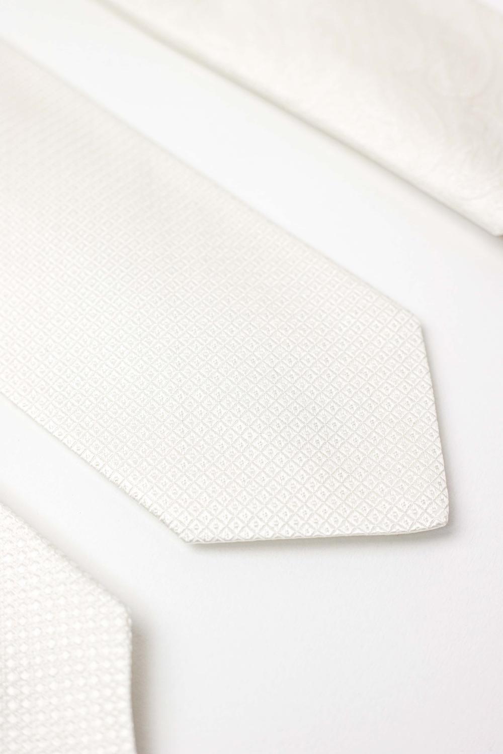 Luxuriöse elfenbeinfarbene Krawatte aus italienischer Seide mit einer hohen Seidendichte. Diese Art von Seide, auch Satinseide genannt, fühlt sich voll und fest an und ist die perfekte Wahl für festliche Anlässe. Die Francesco Krawatte ist in drei verschiedenen Breiten erhältlich, perfekt für jeden Bräutigam, Trauzeugen oder stilvollen Herren.