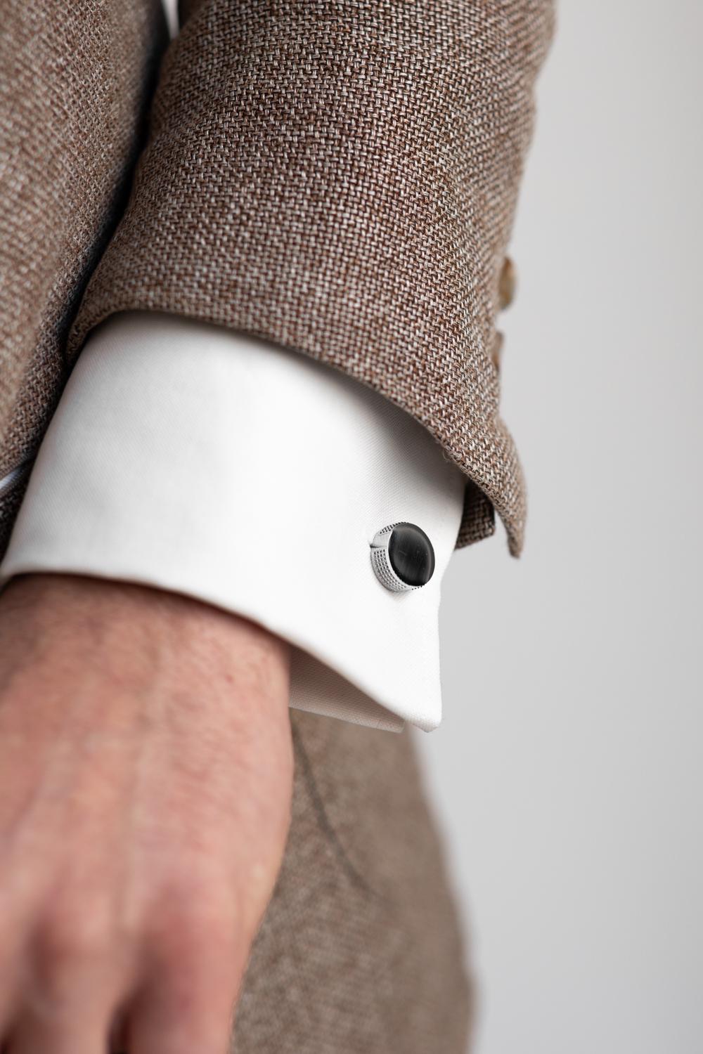 The Disc Cufflinks are one of our more modern, minimalist designs. These solid, silver-colored cufflinks featuring a textured side are perfect for those on the lookout for a sophisticated accessory. Crafted for Abrazi's Mens collection from rhodium plated brass.