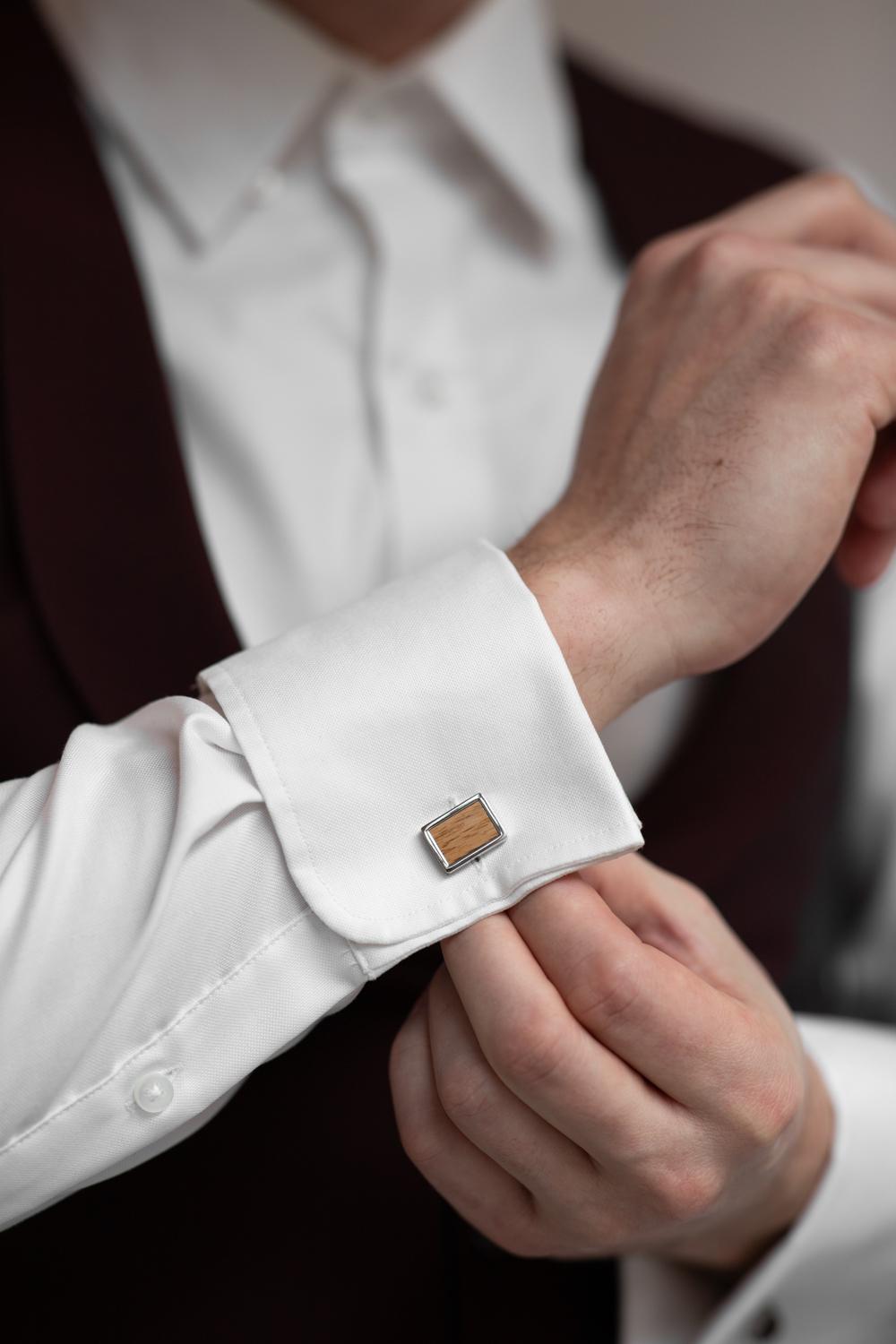 Abrazi's Wooden Cufflinks, available in different colors and shapes, are a refined choice with a vintage aesthetic. Crafted from actual wooden veneer and rhodium plated brass, these cufflinks are a tasteful addition to any gentleman's appearance.