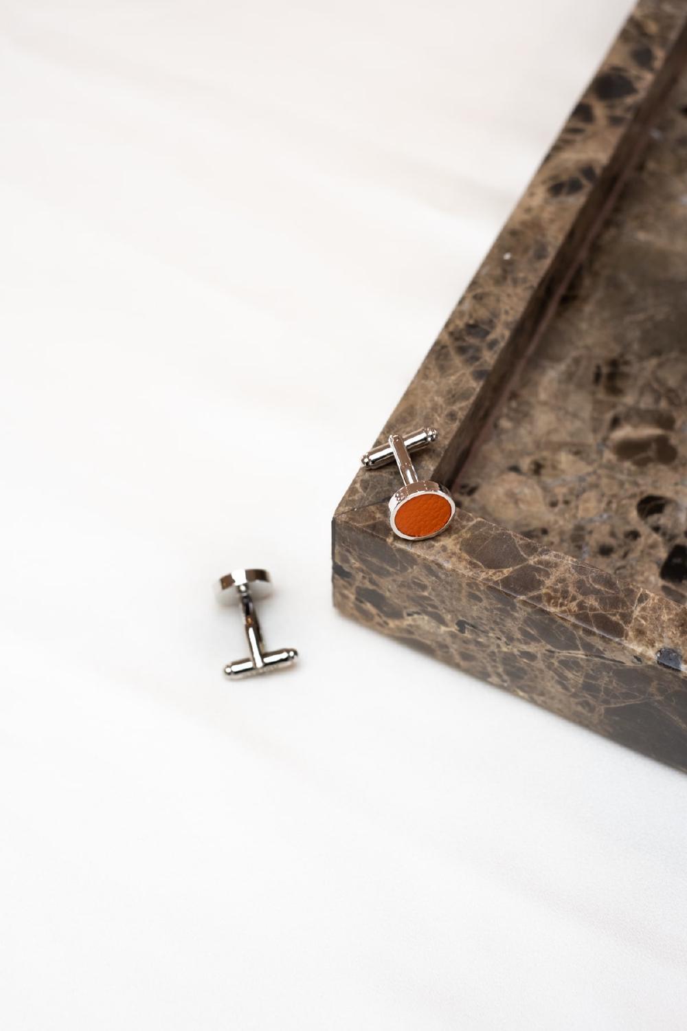 Abrazi's Orange Leather Cufflinks, also available in a vast array of other colors and textures, are as stylish as they are timeless. Crafted in the Netherlands from hand picked vintage leather and rhodium plated brass, these cufflinks are sure to elevate any gent's appearance. If you're looking for a specific color please don't hesitate to contact us, as our leather cufflinks can be made to order.
