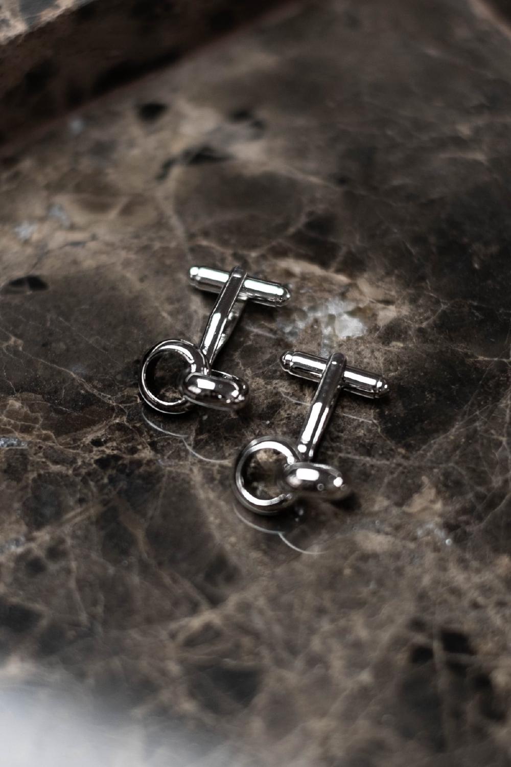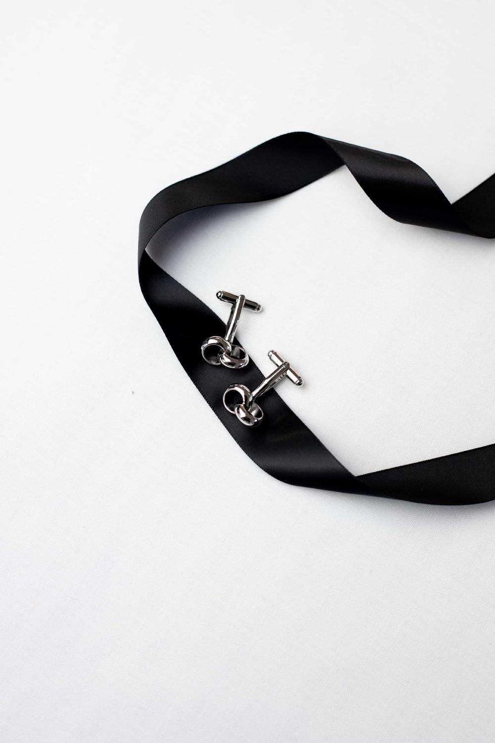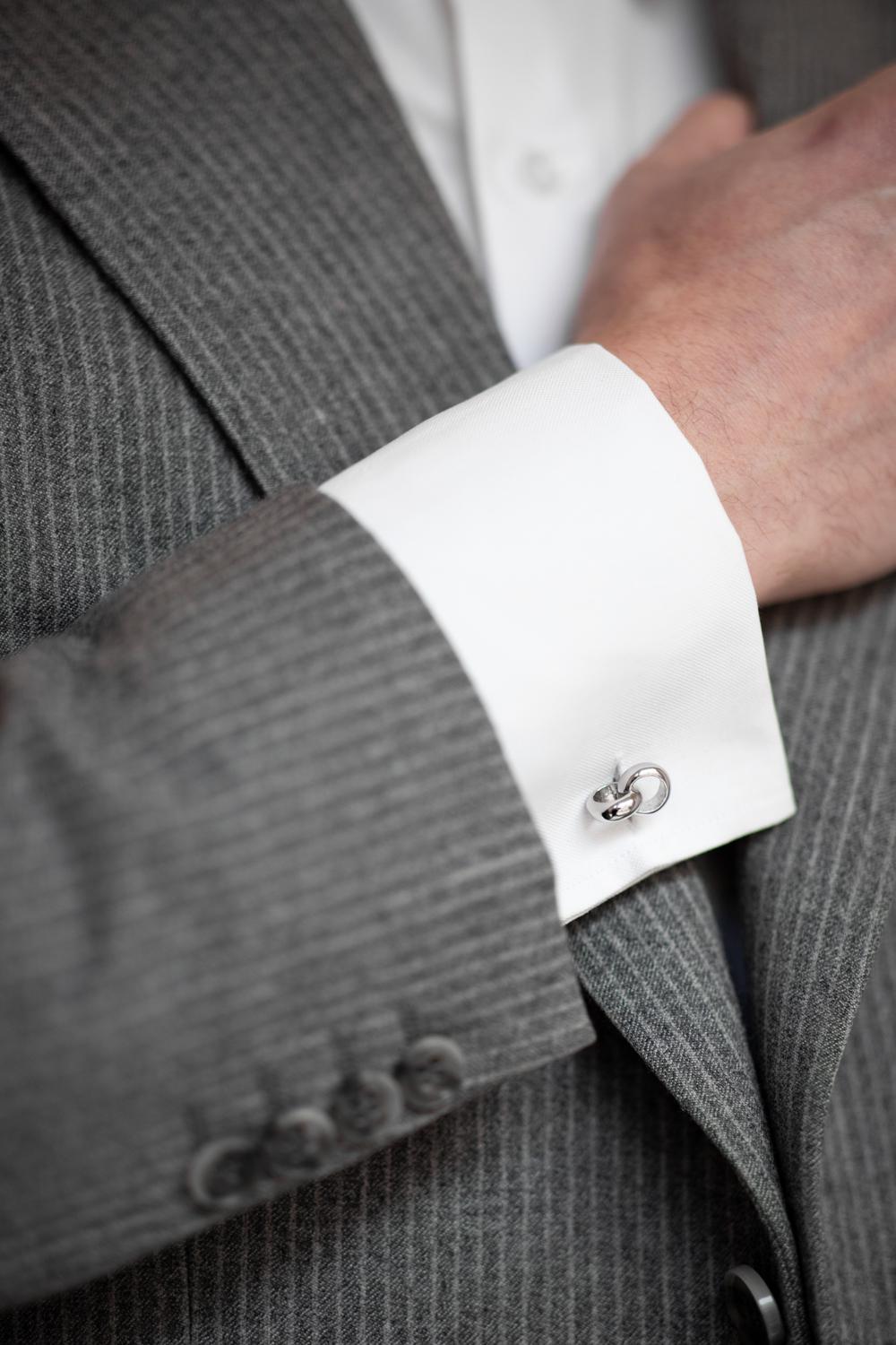 The Linked Ring Cufflinks are a tasteful choice for the groom on his wedding day, as interlocked rings are a symbol of marriage and unity. These silver-colored cufflinks are crafted from rhodium-plated brass for Abrazi's mens collection.