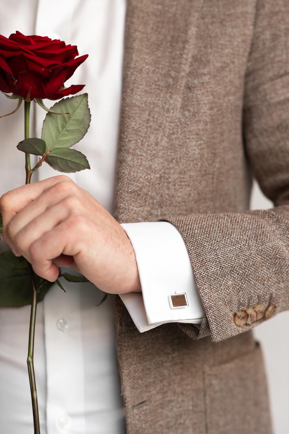 Abrazi's Wooden Cufflinks, available in different colors and shapes, are a refined choice with a vintage aesthetic. Crafted from actual wooden veneer and rhodium plated brass, these cufflinks are a tasteful addition to any gentleman's appearance.