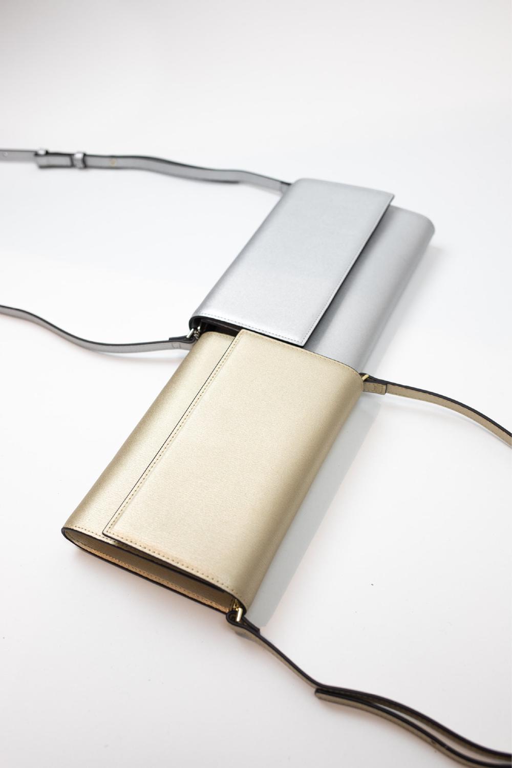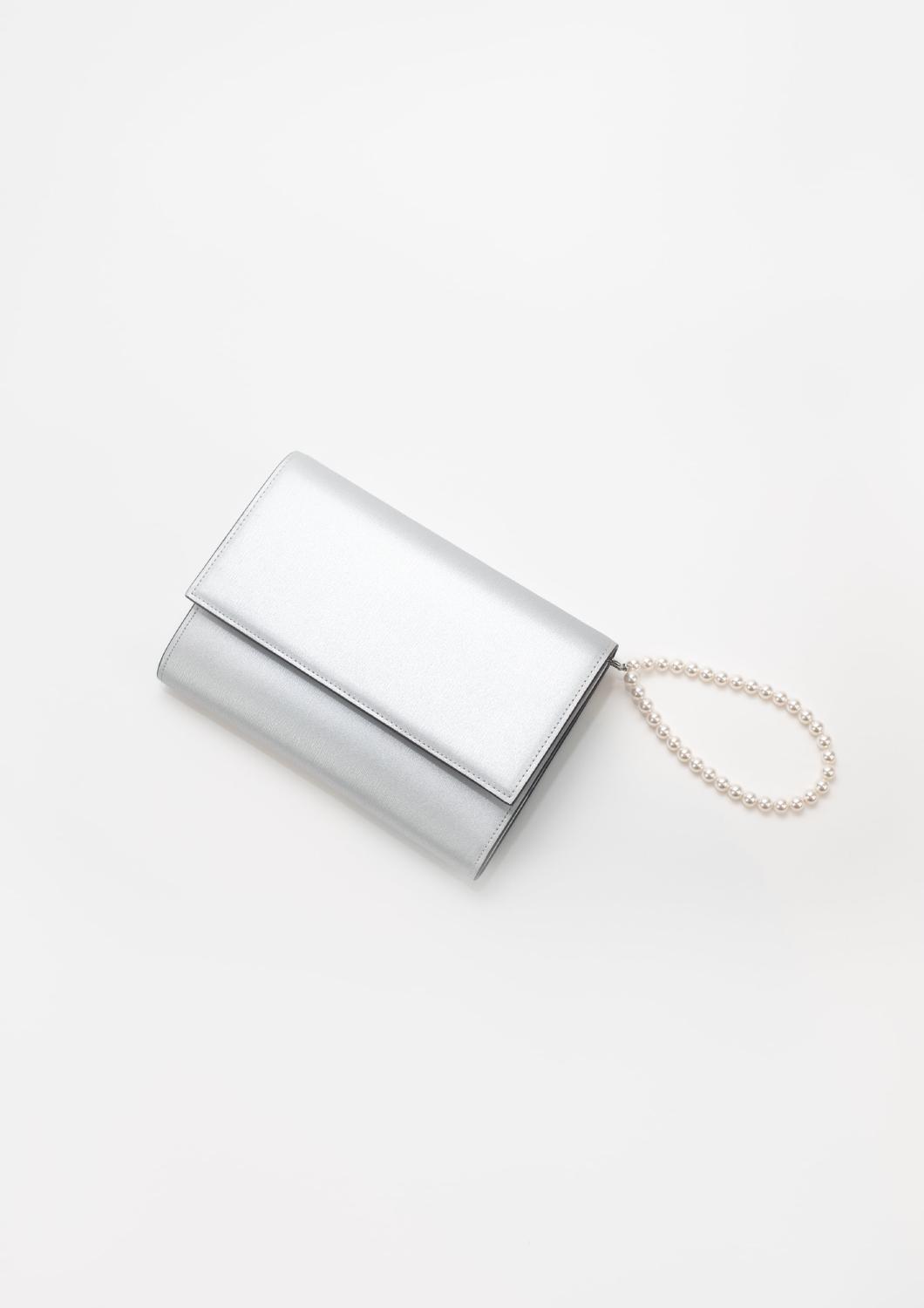 The Jackie Clutch, made of the finest quality genuine leather, is an incredibly versatile and wearable item. The clean and minimalist design comes with a detachable shoulder and wrist strap, has a mirror and a zipper on the inside and a magnetic button closure. The shoulder straps are made of leather, the wrist straps are made of a single strand of pearls. Perfect for an evening out.
