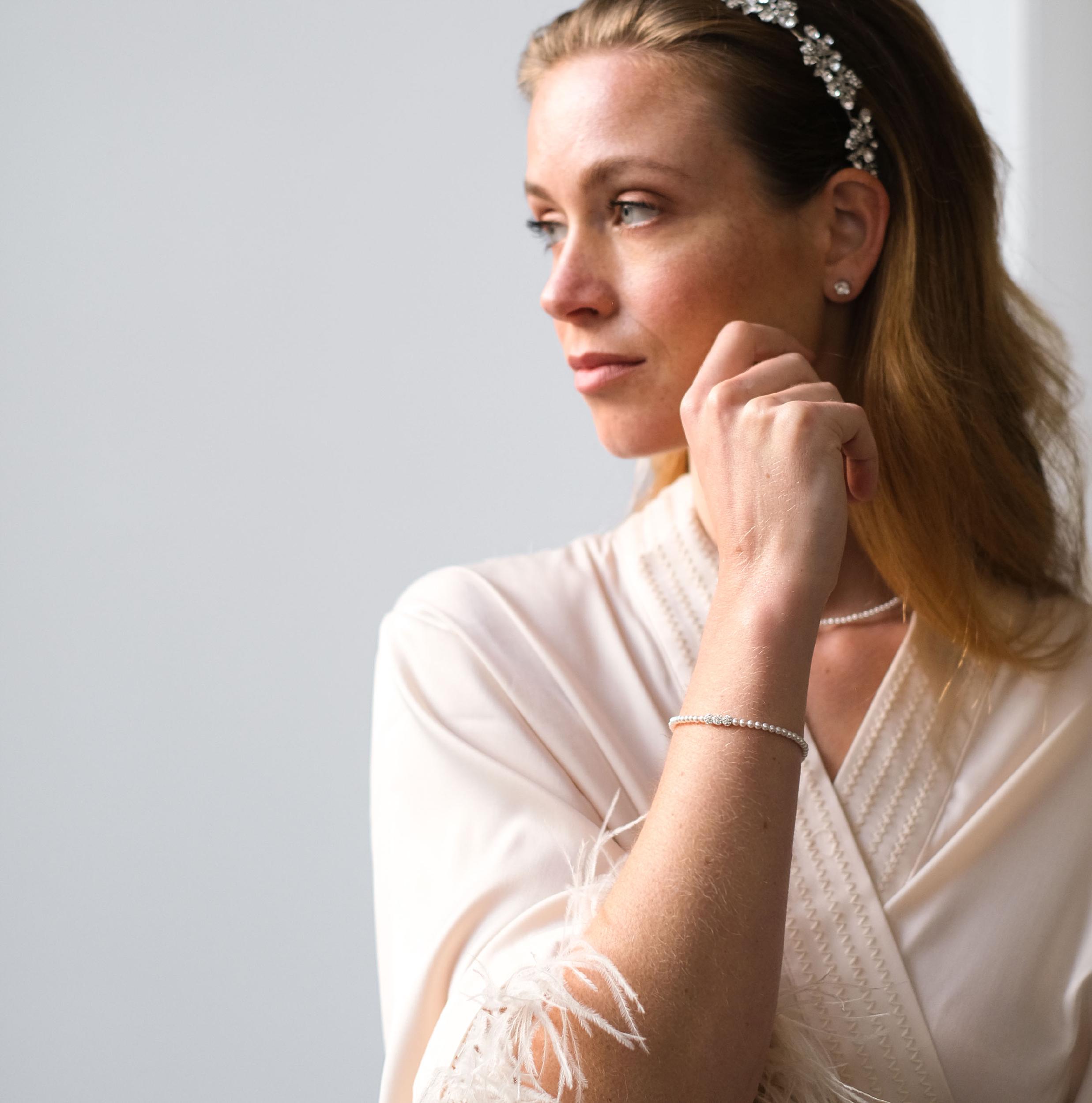 Our wedding bracelet collection, part of our bridal jewelry collection, ranges from classic Swarovski pearl bracelets to crystal tennis bracelets for your wedding day. The majority of these pieces are available with different types of high quality plating, such as 14k gold, rhodium and rose gold. The perfect addition to any bride’s look. Since picking the right jewelry for your wedding can be tricky, our team is here to help you and give personal advice.