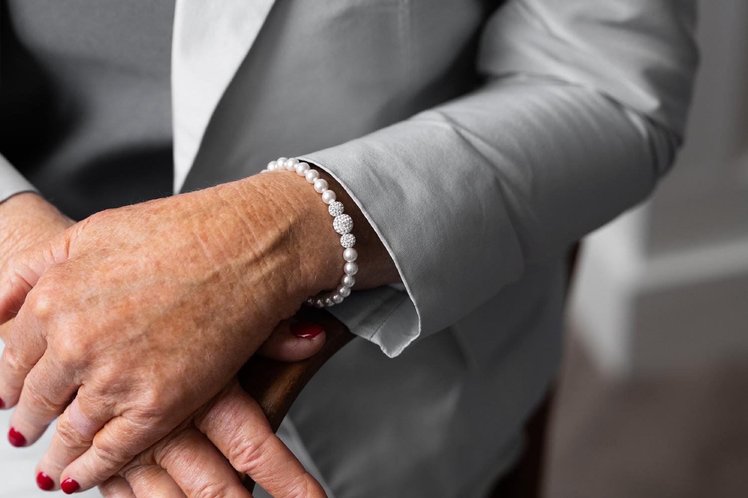 The Elisabeth Pearl Bracelet is a true Abrazi classic, and has been part of our collection for many years. This bridal bracelet is made of extremely high quality pearls with a unique crystal core, crystal embellished middle beads and a 925 sterling silver closure with rhodium plating. If you're looking for a classic bridal jewelry set, make sure to check out the Elisabeth Necklace too.