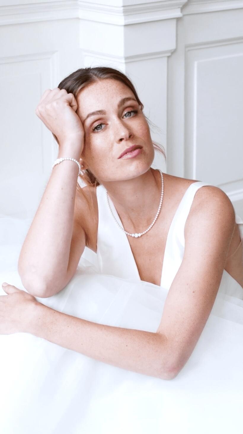 The Marlot Bracelet is an Abrazi favorite, made with tiny 3mm pearls. The bracelet is made of Swarovski pearls with a unique crystal core and has three smaller beads embellished with tiny crystals and a slightly bigger pearl in the middle. The closure is made of 925 sterling silver plated with rhodium. The bracelet can be paired with the Marlot Necklace or can be worn on its own.