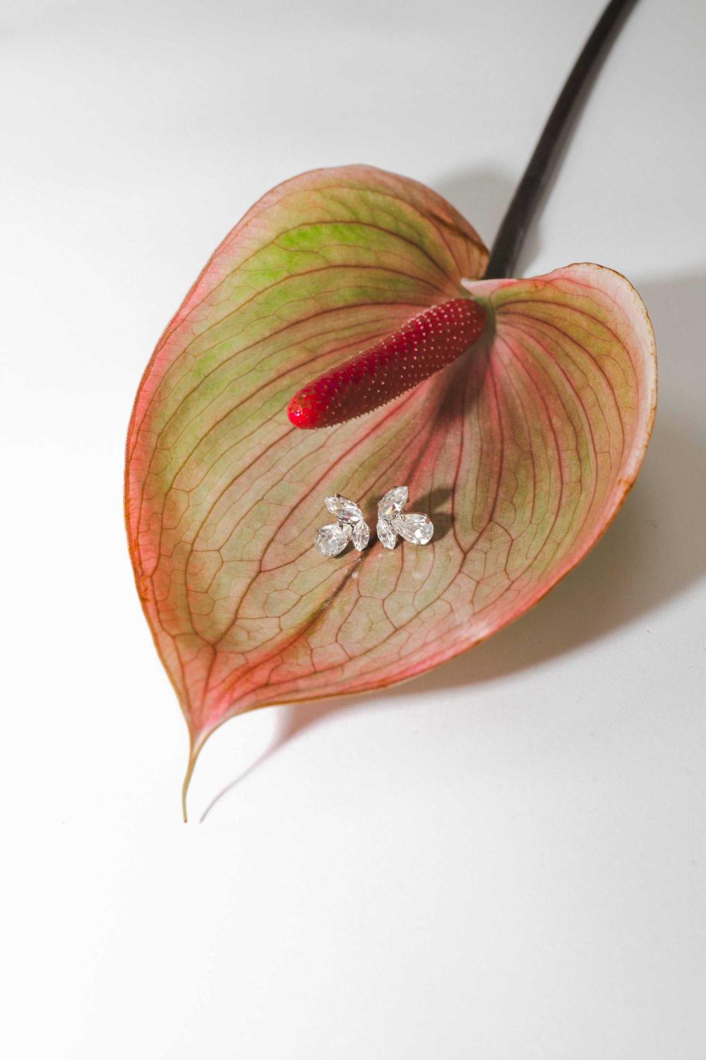 The Anna Earrings feature elegant marquise-shaped Swarovski-crystals set in durable brass. Available with rhodium or 14kt gold plating, they pair beautifully with the Anna Necklace and are a beautiful choice for the modern bride.