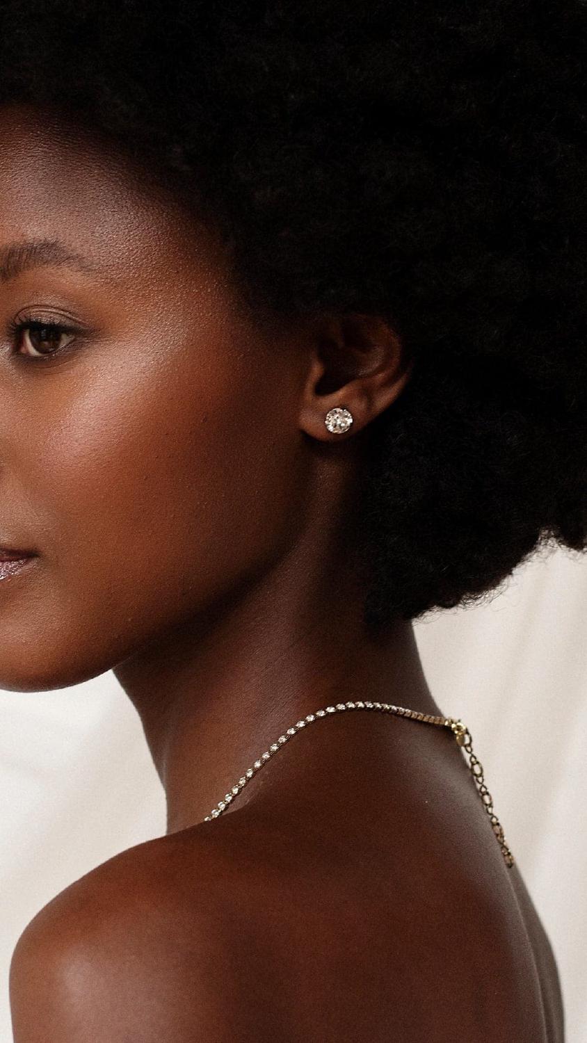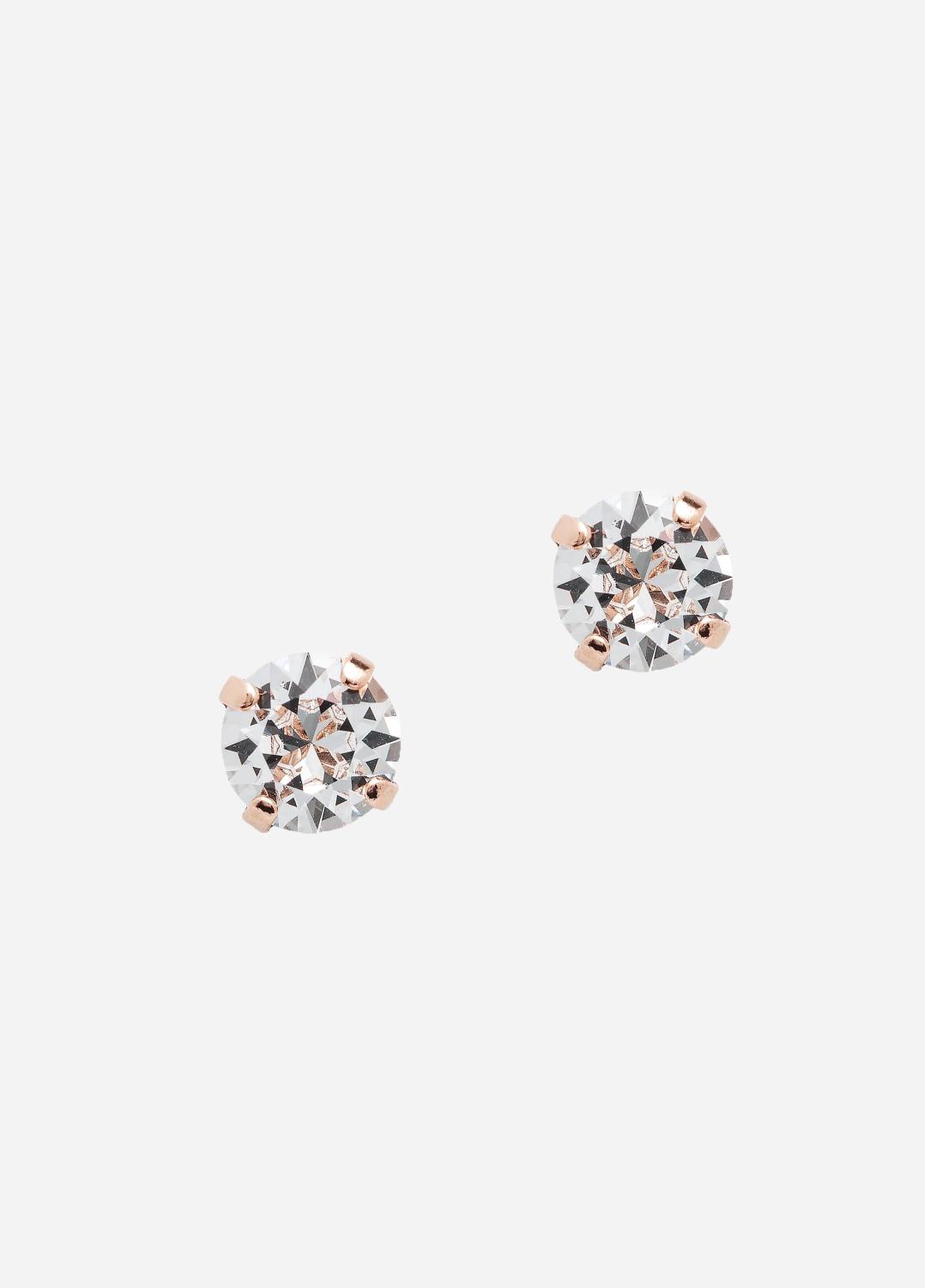 The Ava Earrings are timelessly elegant: a stunning stud featuring a single Swarovski crystal set in a brass setting. Available in two sizes and with plating options of rhodium, 14kt gold, or rose gold.