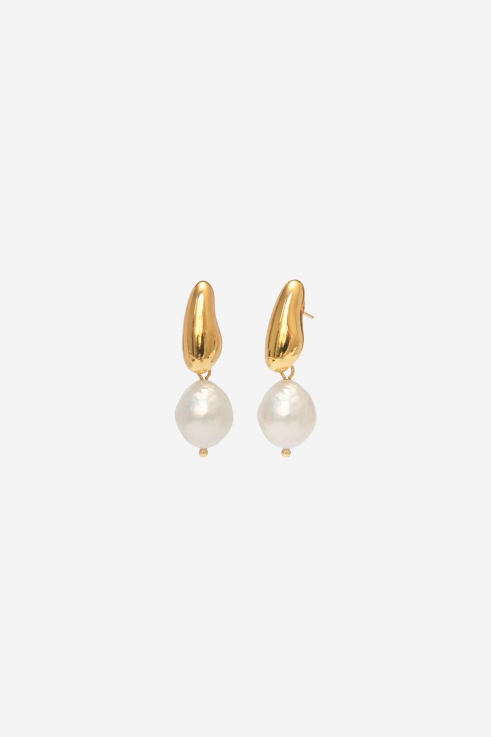 The Eyre Pearl Earrings bring together modern design and classic elegance. Featuring a unique, sculpted gold accent paired with a natural freshwater pearl, these earrings are ideal for brides seeking a statement piece that’s both sophisticated and fresh. Perfect for adding a refined touch to any look.