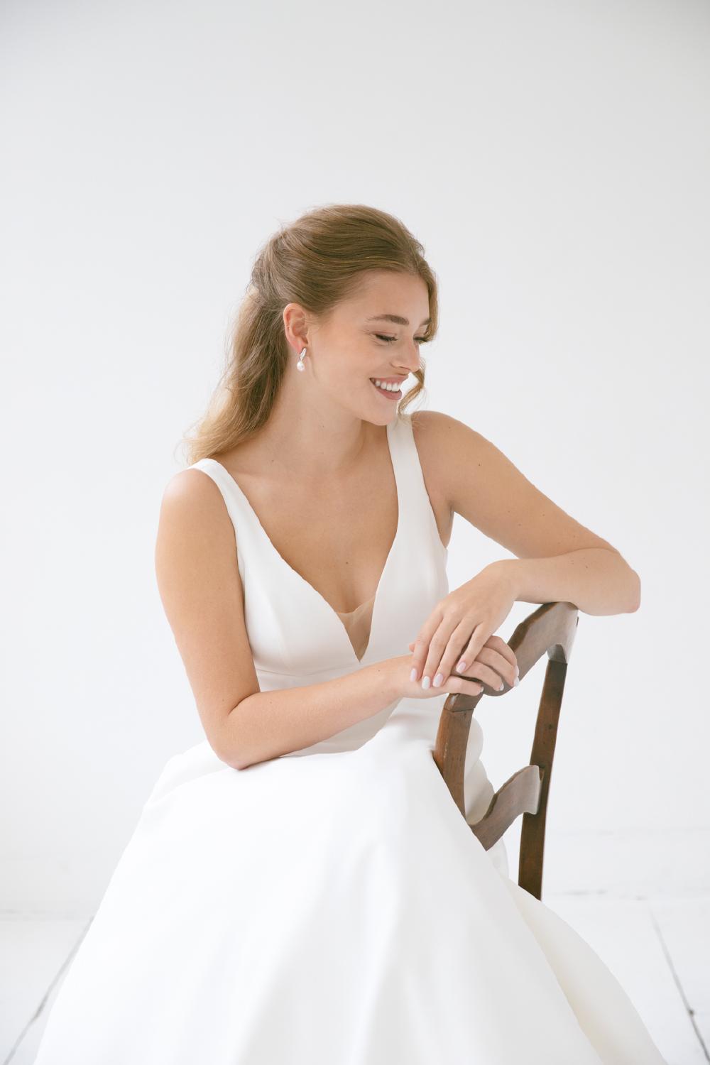 The Eyre Pearl Earrings bring together modern design and classic elegance. Featuring a unique, sculpted silver accent paired with a natural freshwater pearl, these earrings are ideal for brides seeking a statement piece that’s both sophisticated and fresh. Perfect for adding a refined touch to any look.