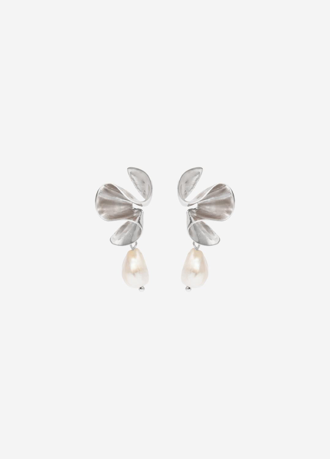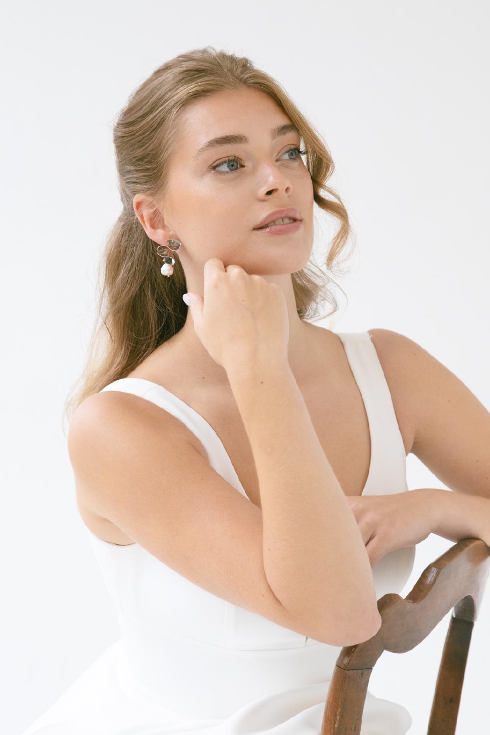 Featuring an abstract petal-inspired shape, these earrings are a modern twist on the classic pearl drop. The unique design adds a hint of edge to your bridal look, while the baroque pearl keeps it elegant. A fresh choice for brides who want something a bit different but still timeless.
