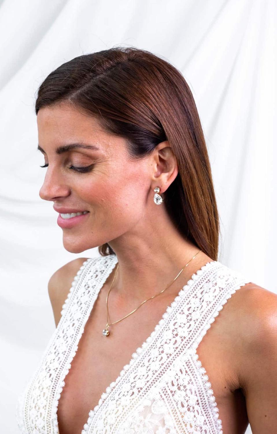 The Maddie Earrings are the smaller sister of our classic Sophia Earrings, true Abrazi originals with pear shaped Swarovski crystals. They are available with rhodium, 14kt gold or rose gold plating.