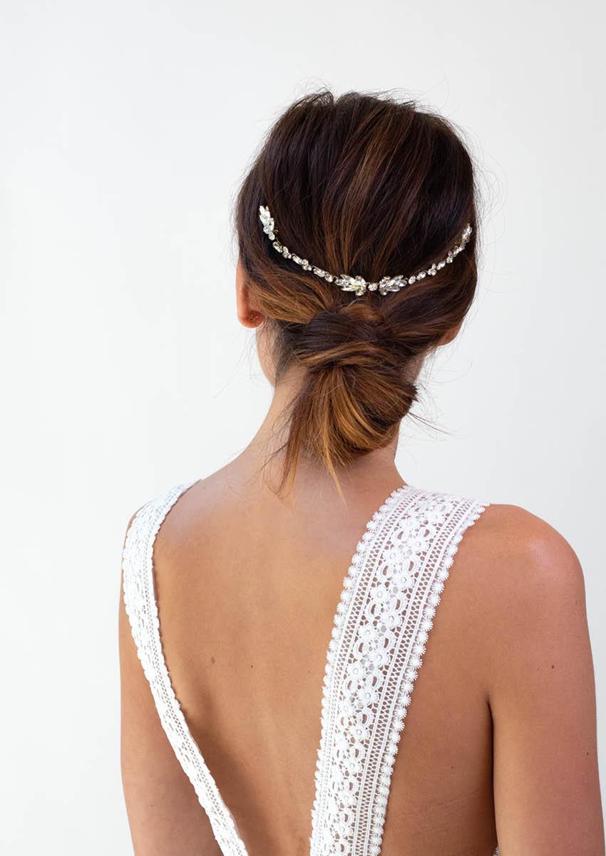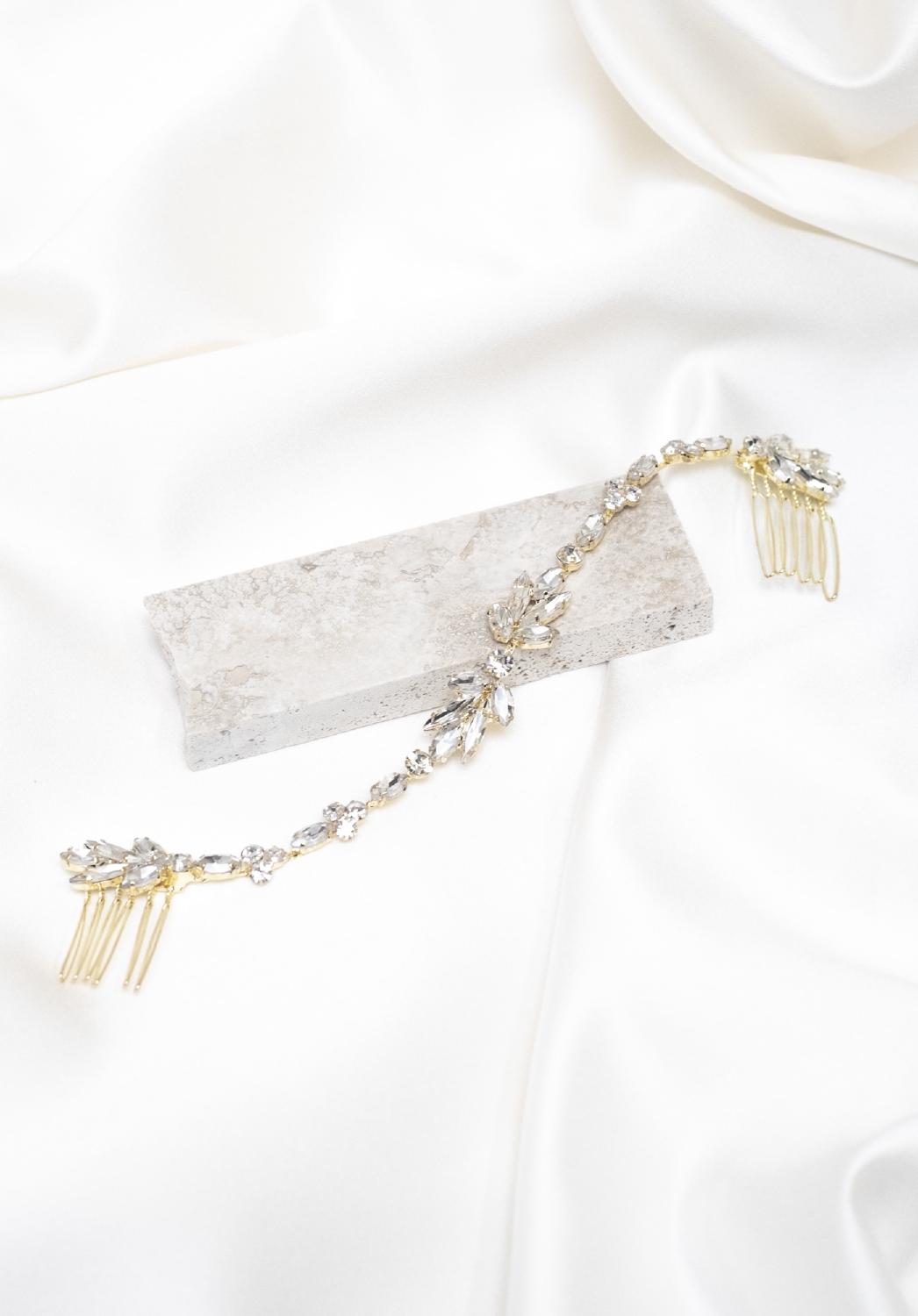 The Puck Double Haircomb is a stellar hair piece from our bridal collection. Because of the connected double combs, it's best worn with a braid or a low bun. Embellished with varying shapes of crystals placed in a symmetrical setting, the tiara-inspired Puck headband / hair comb is sure to turn heads.
