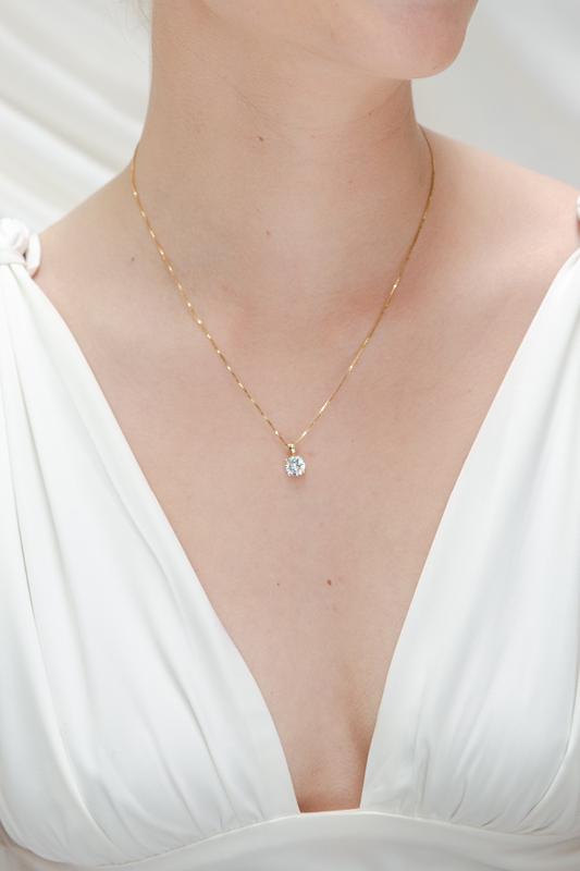 The Ava Necklace is as timeless as they come. A beautiful wedding necklace with a single crystal pendant on a subtle box chain, made of 925 sterling silver. Available with rhodium, 14kt gold or rose gold plating.