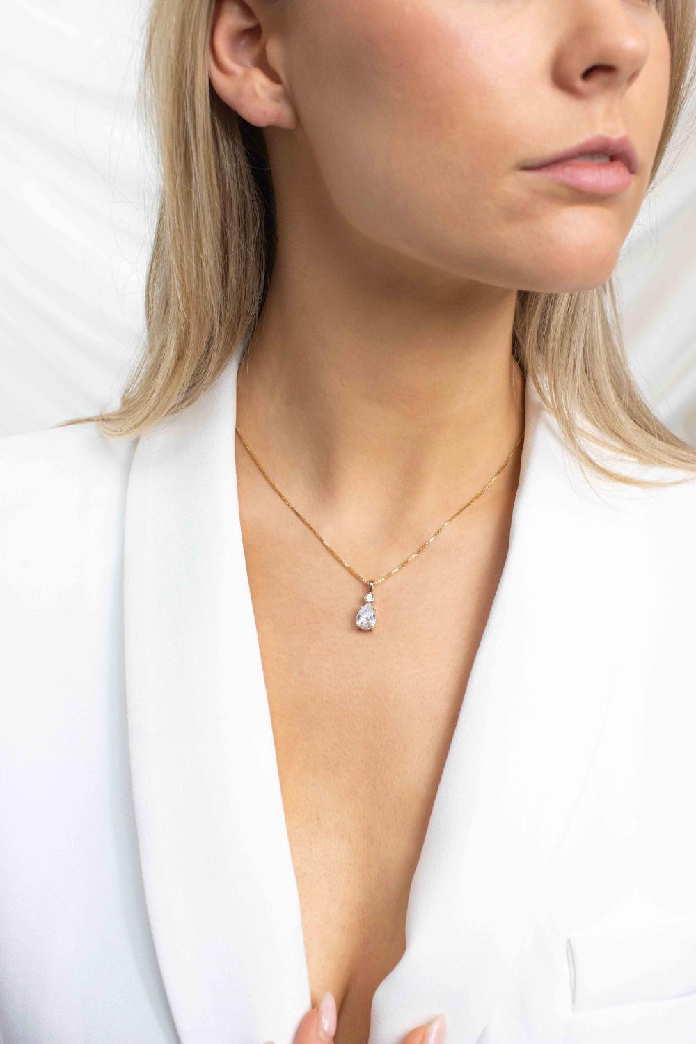 The Soraya Necklace is an Abrazi classic, a chique yet modern bridal necklace. With a single crystal pendant on an elegant box chain, made of 925 sterling silver. This necklace is easy to wear on your wedding day. The Soraya Necklace is available with rhodium, 14kt gold or rose gold plating, and in two lengths: 42cm en 50cm.