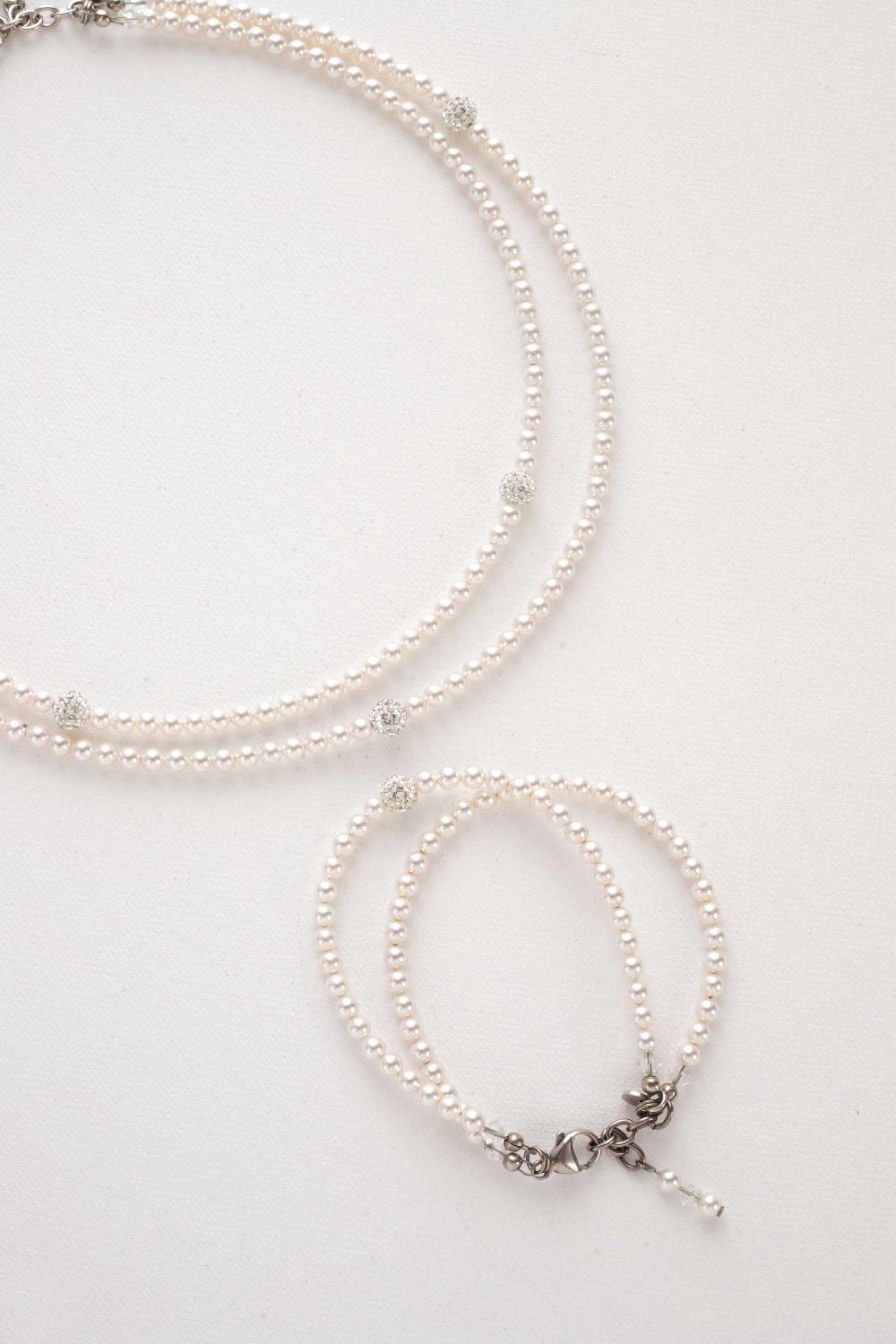 The Selena Double Necklace set is a true Abrazi classic, and has been part of our collection for many years. The necklace and bracelet are made of crystal pearls, crystal embellished beads and a 925 sterling silver closure with rhodium plating. If you're looking for a classic bridal jewelry set, this could be a great fit.