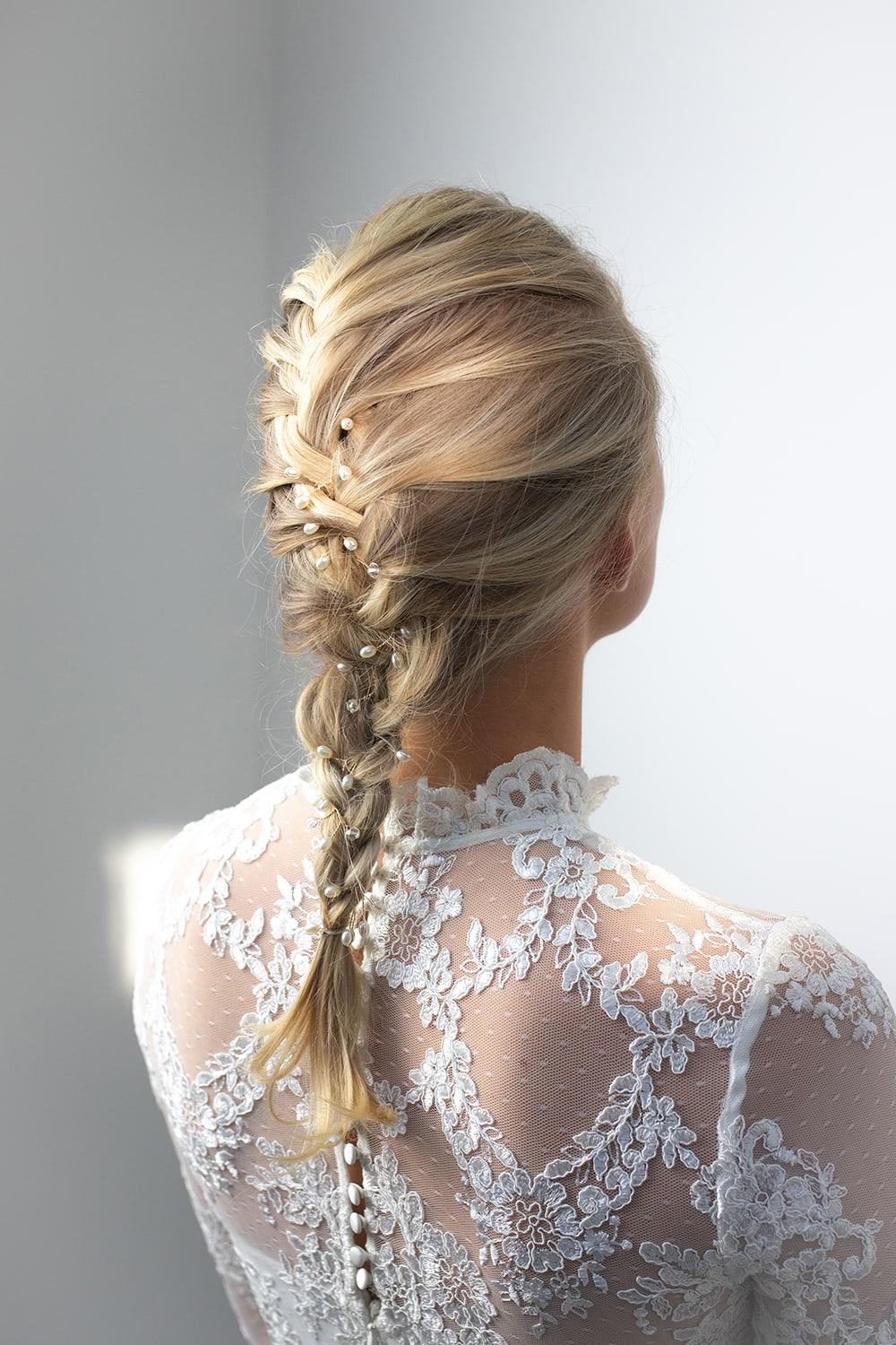 De Nicki Haarband is de meest subtiele haarband uit de Abrazi bruidscollectie. Deze haarband is versierd met parels en kristallen, en kan in vele verschillende kapsels worden gedragen.
